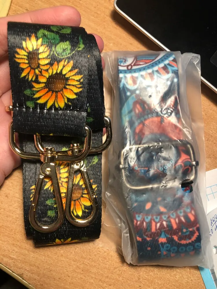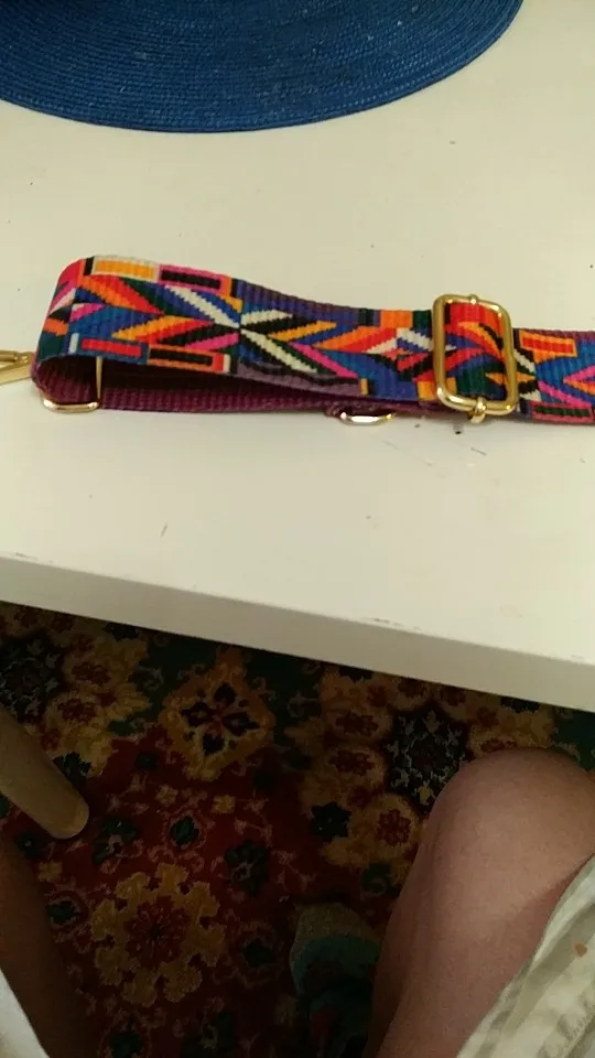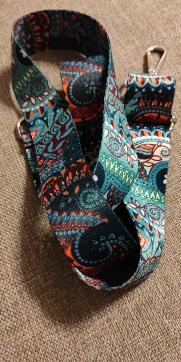 Ремешок, качественный, широкий. Выдержит сумку нагруженную всем чем угодно. Защелки по краям полностью выполнены из металла. Крепкие, прочные. Рисунок вышит качественно и ярко Брали не один раз. Почти на каждой новой сумке меняем ремешки на эти. Товар качественный. В Ростов-на-Дону прибыл за две недели. Трек отслеживался. Продавца рекомендую.