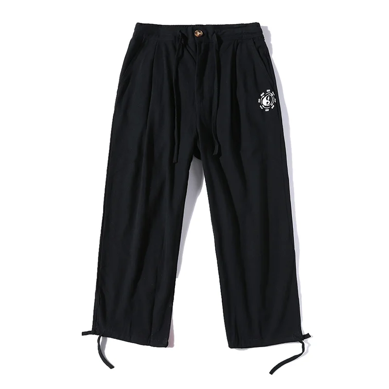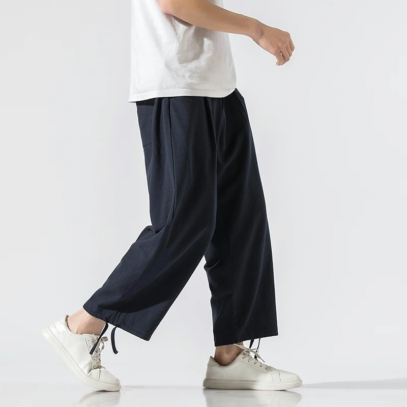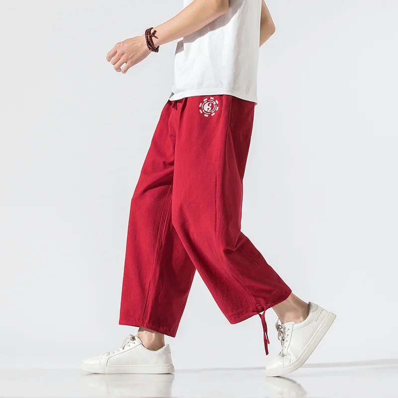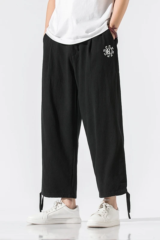 Брюки-кимоно мужские льняные с широкими штанинами, повседневные свободные штаны в японском стиле Харадзюку, хлопковая юбка, штаны-султанки, 5XL