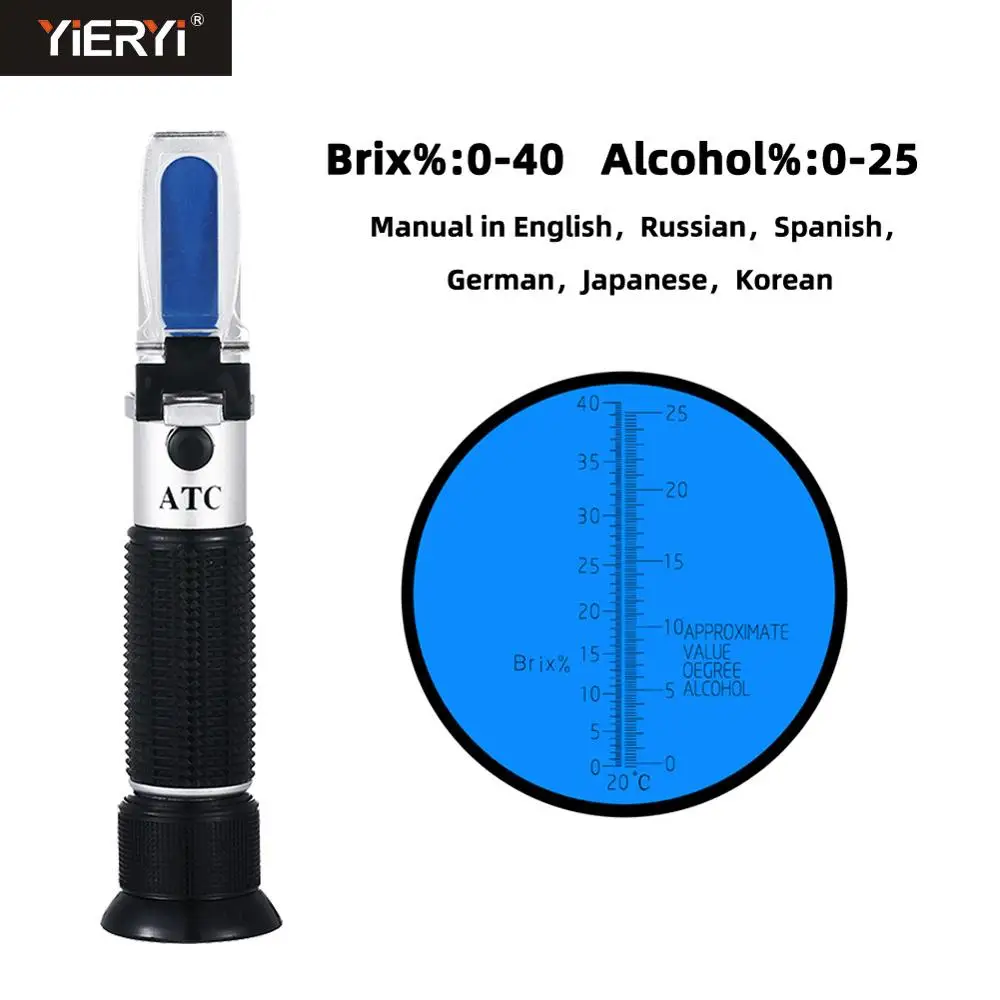 Ручной спиртометр Yieryi, инструмент для измерения концентрации вина и сока, измеритель концентрации 0-25% спиртового пива 0-40% Брикса, винограда ATC