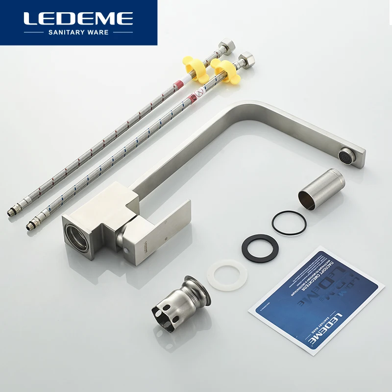 Смесители для кухни LEDEME из нержавеющей стали, кухонный кран для раковины, вращающийся на 360 градусов, плоский кухонный смеситель, кран для холодной и горячей воды L74033