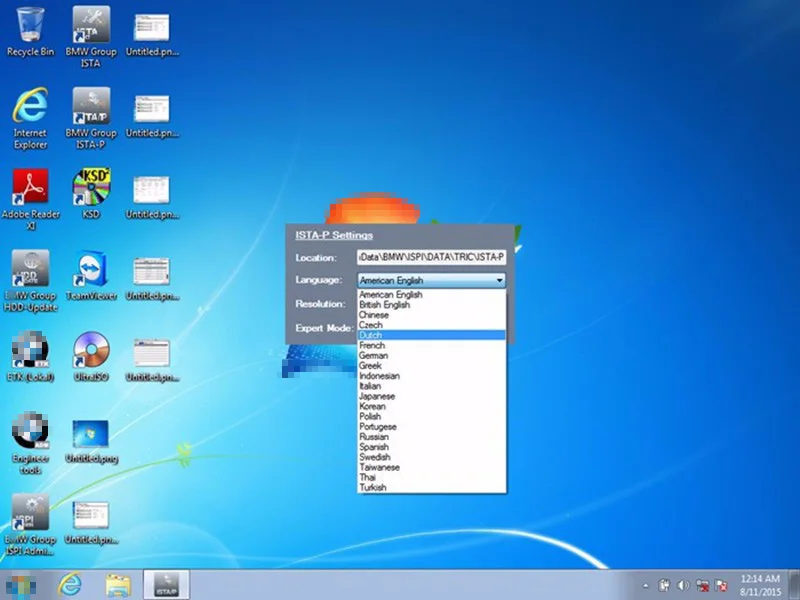 ISTA D:Английский, немецкий, испанский, французский, итальянский, польский, португальский, турецкий, чешский, шведский, голландский, русский, японский, корейский, тайский, ШведскийISTA-P:Английский, немецкий, испанский, французский, итальянский, польский, португальский, турецкий, чешский, шведский, голландский, русский, японский, корейский, тайский, индонезийский, Шведский