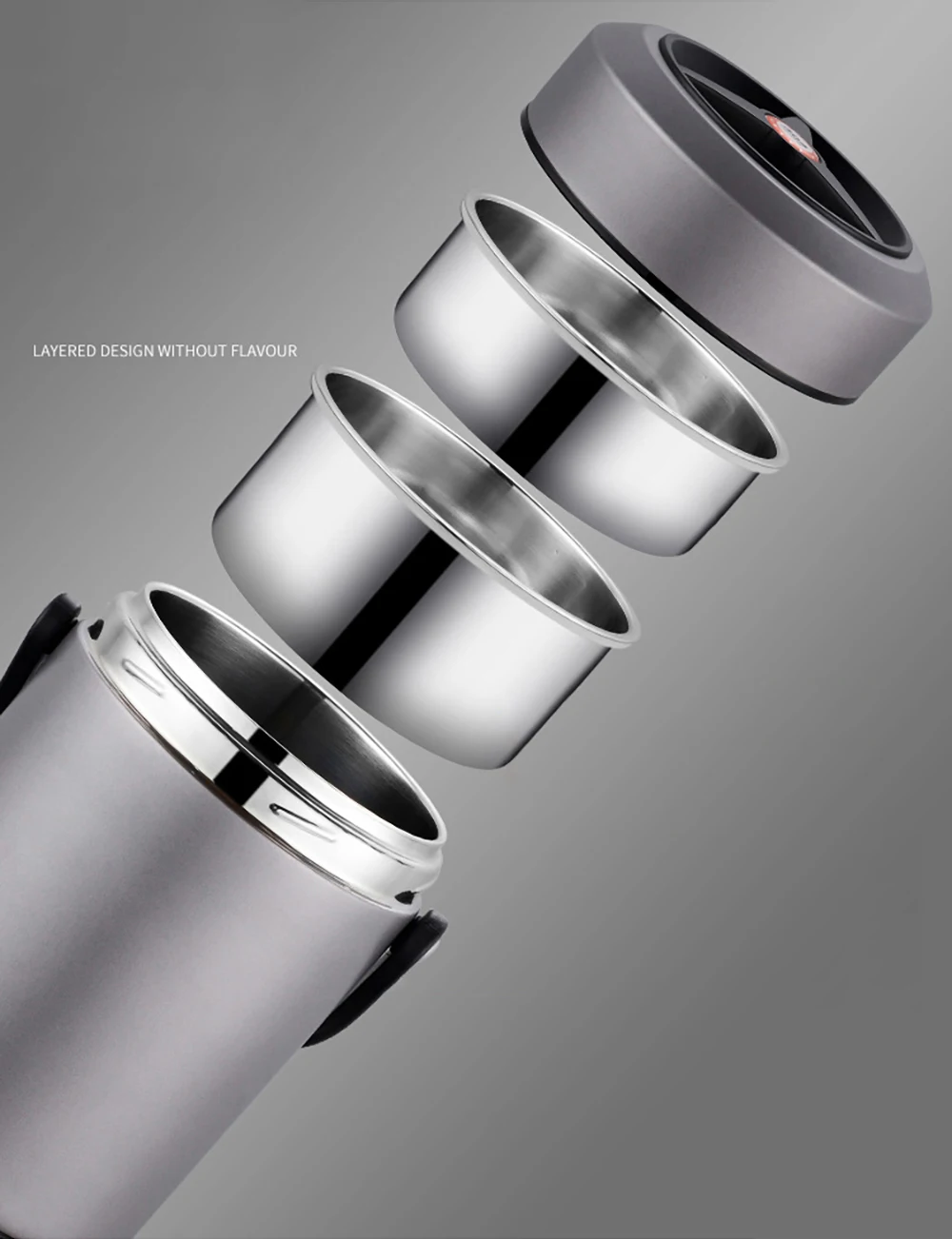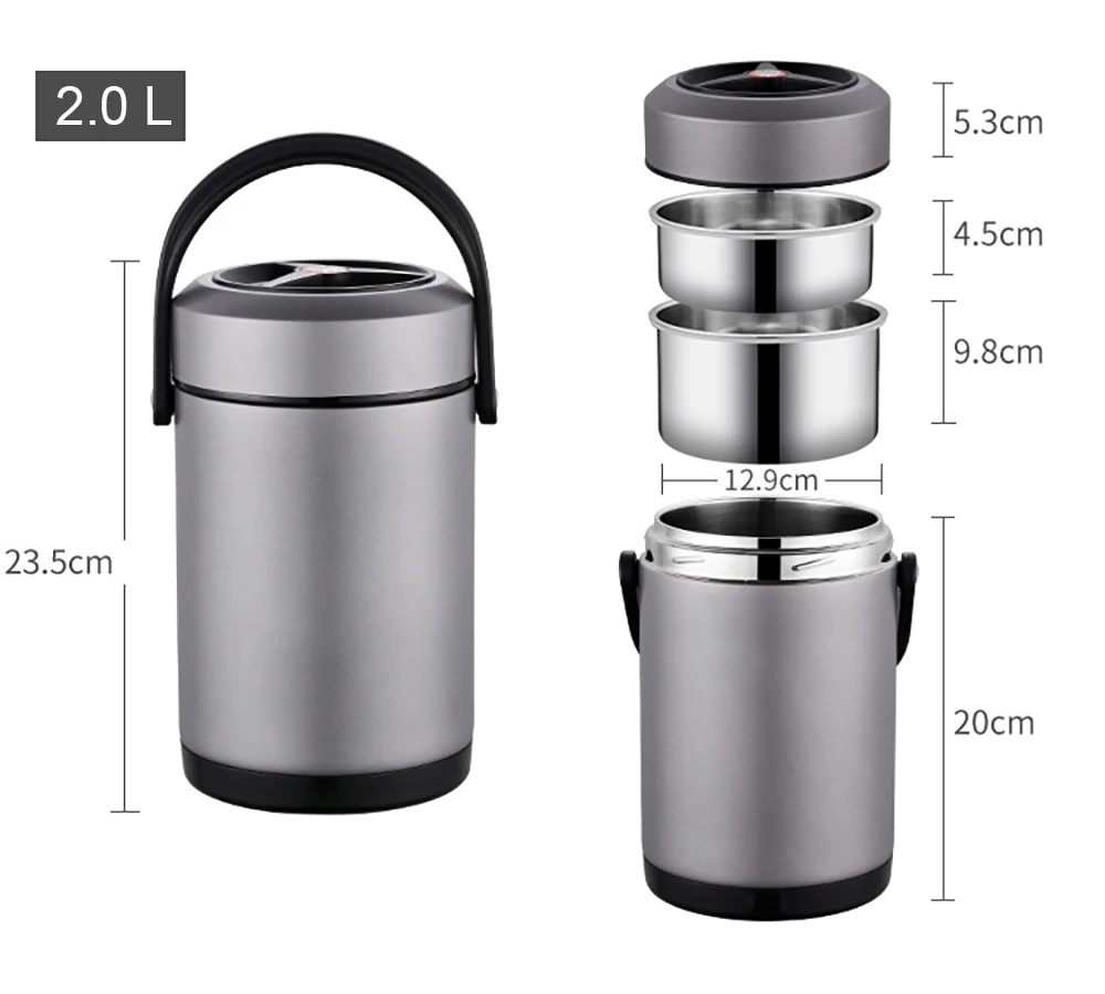 Стильная и портативная коробка для завтрака, большая емкость из нержавеющей стали bento box, эффективный вакуум для сохранения температуры пищевых контейнеров