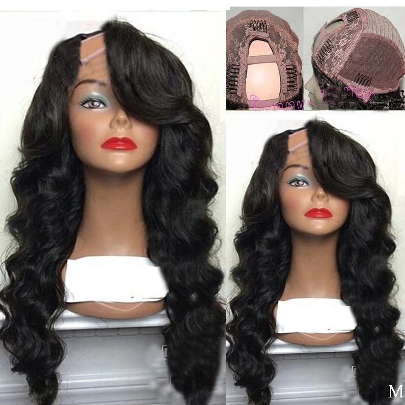 Парики с правой стороной и U-образной частью, волнистые перуанские,...