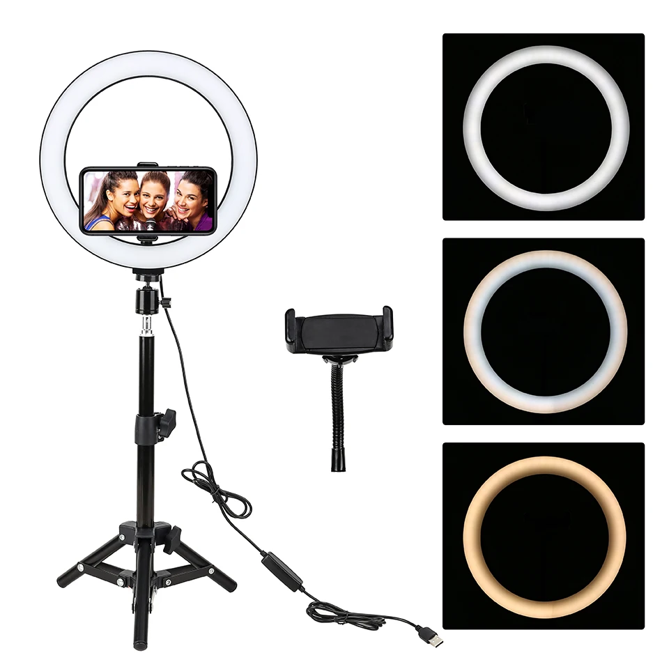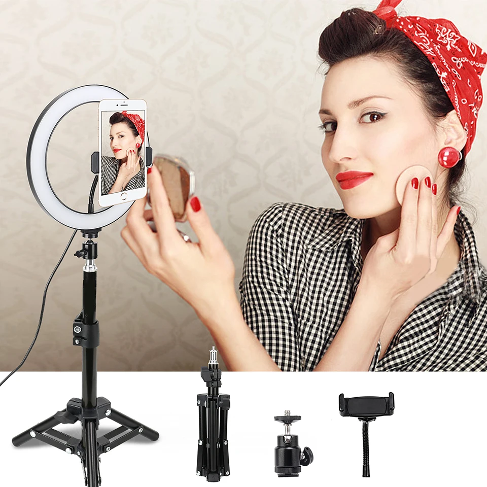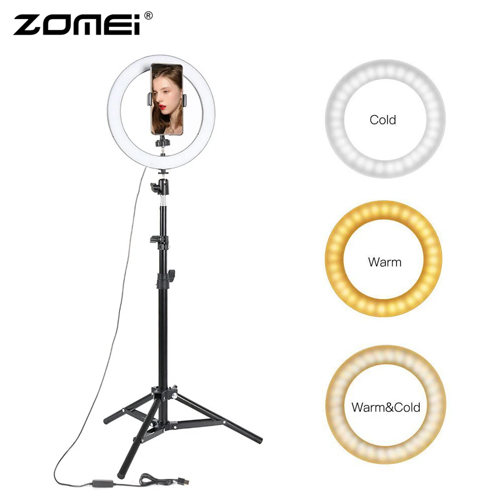 Светодиодный кольцевой светильник ZOMEI для селфи, 10 дюймов, с регулируемой яркостью, студийный светильник для прямой трансляции на Youtube, подходит для нанесения макияжа, 3500-5500k