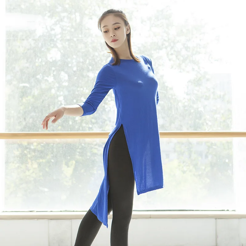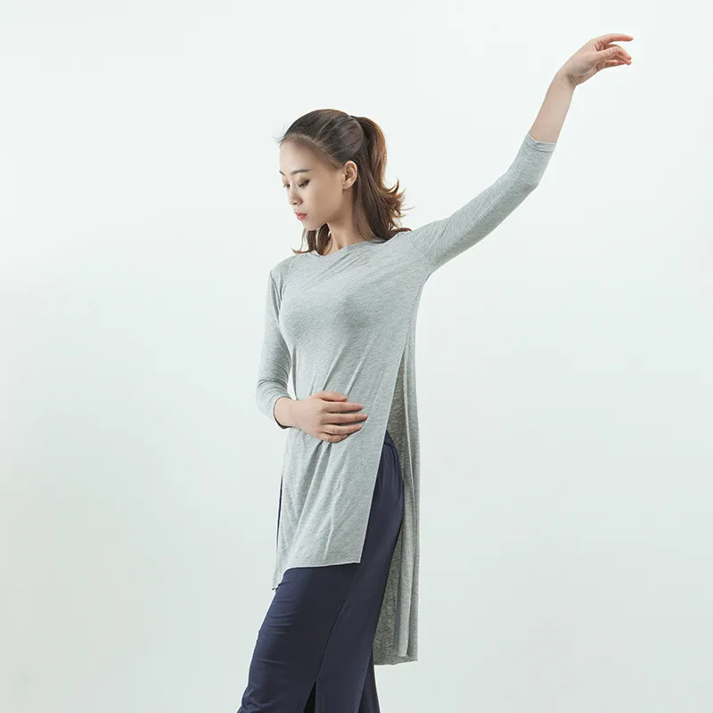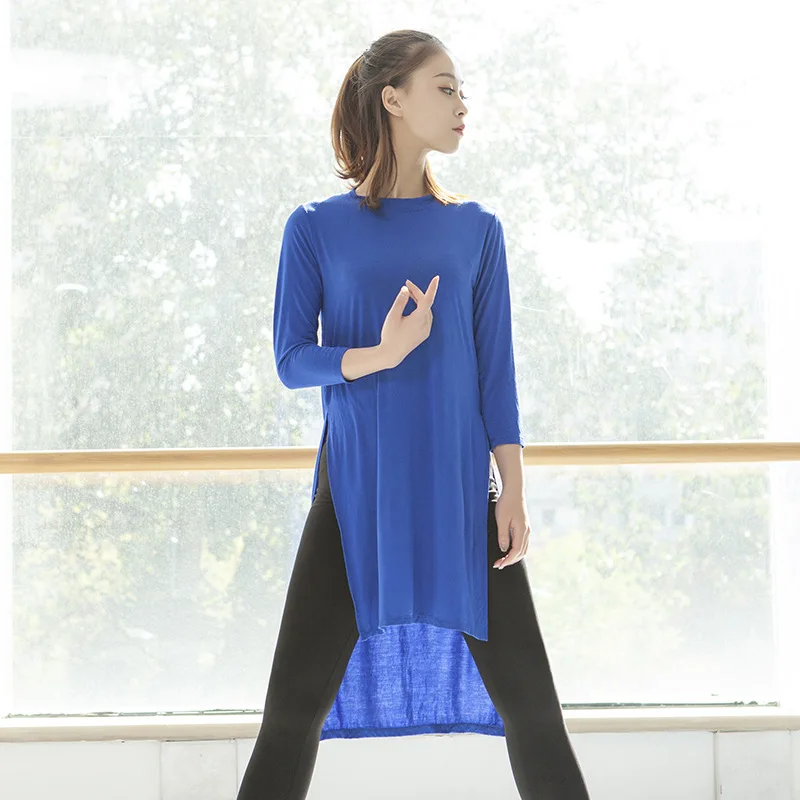 Длинная рубашка для женщин, мешковатая одежда для спортзала, йоги, танцевальный костюм, свободная Базовая тренировочная блузка, тренировочный костюм, Модальная длинная рубашка с разрезом