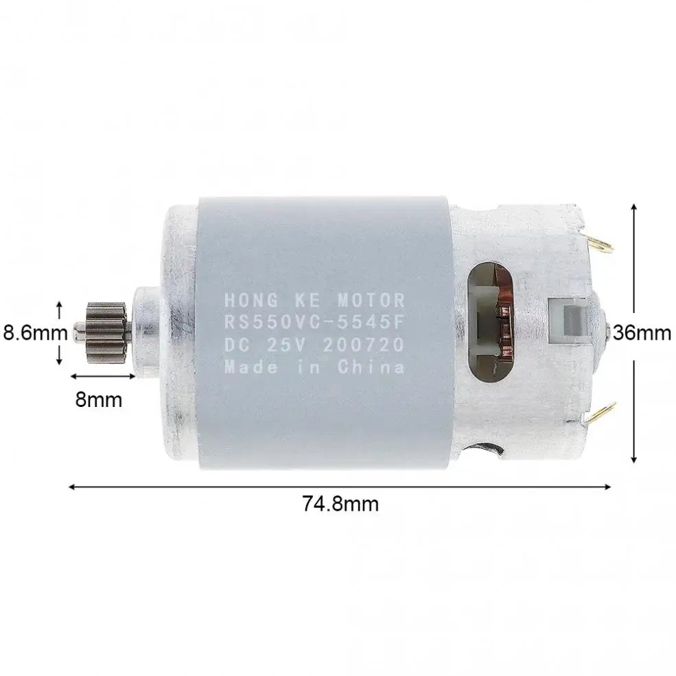 Электродвигатель постоянного тока RS550 25 в 19500 обмин с двумя скоростями 12 зубьев и коробкой передач с высоким крутящим моментом для электрической дрелиотвертки, аксессуары для инструментов