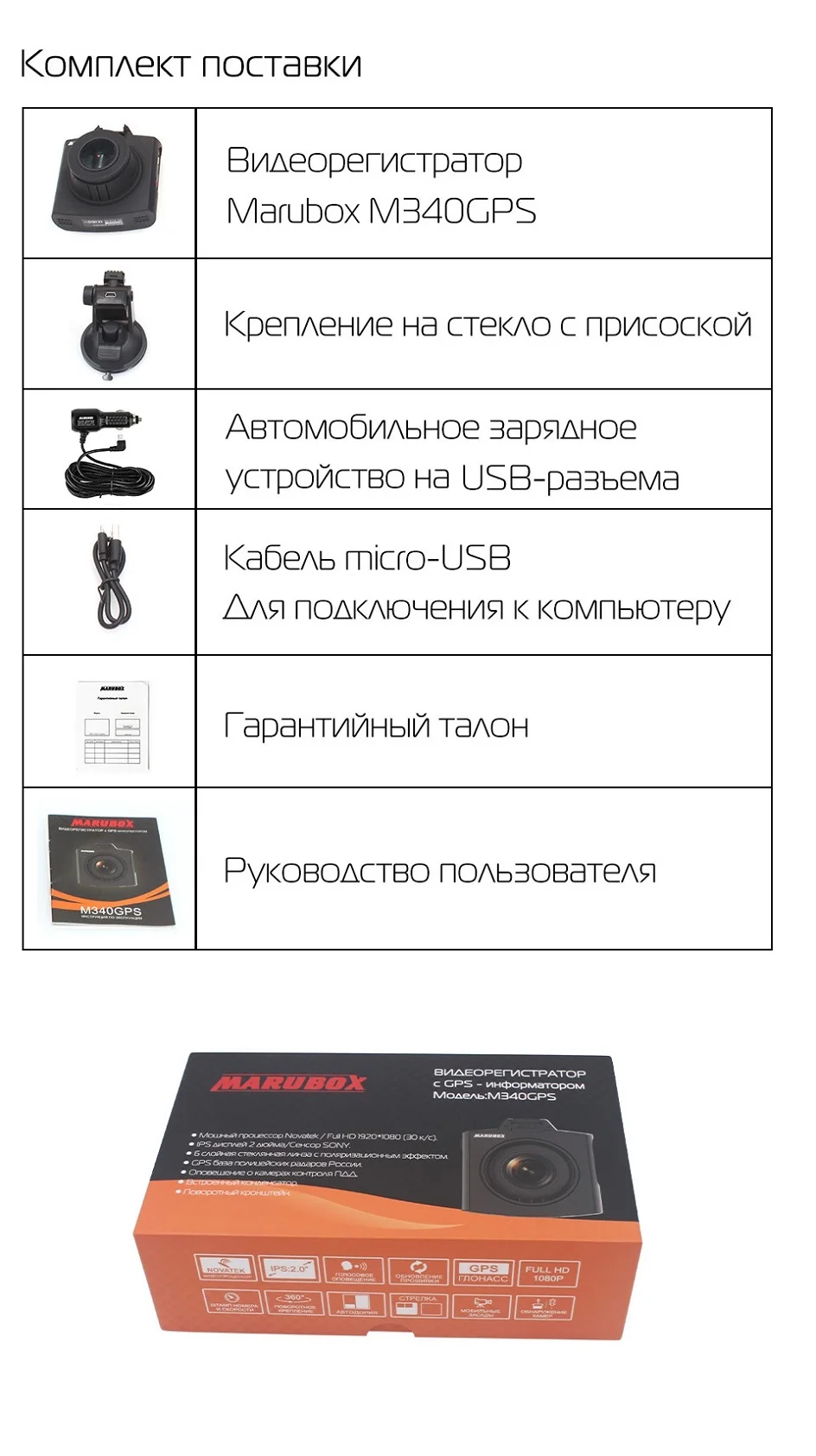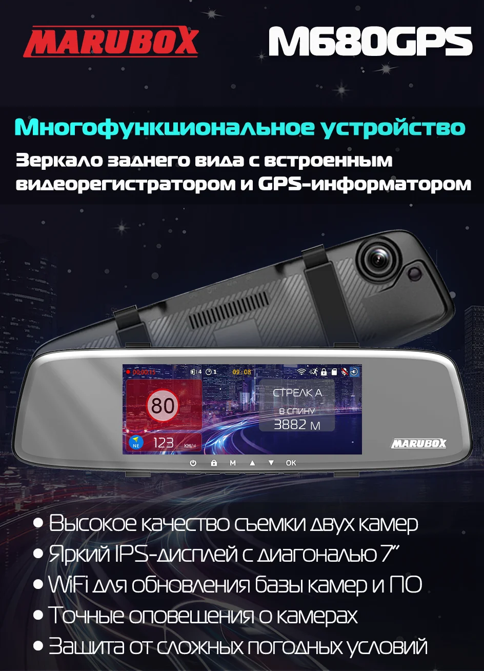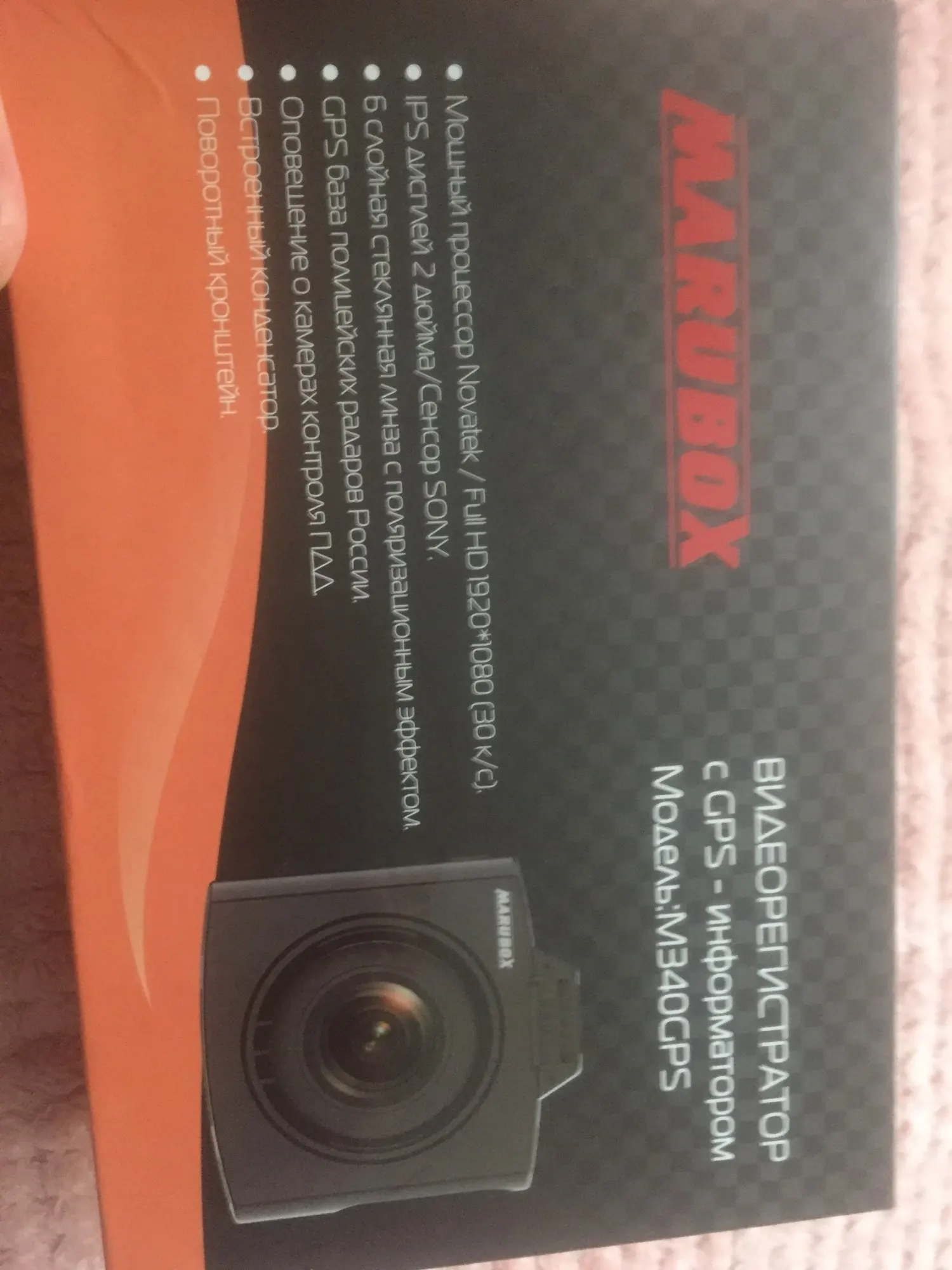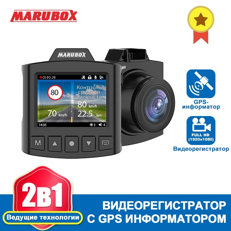 Автомобильный видеорегистратор с GPS информатором, Marubox M340GPS, Русские голосовые оповещения, предупреждение водителя о радарах и камерах на дороге, поворотное крепление,содержит информацию о радарах более 10 стран