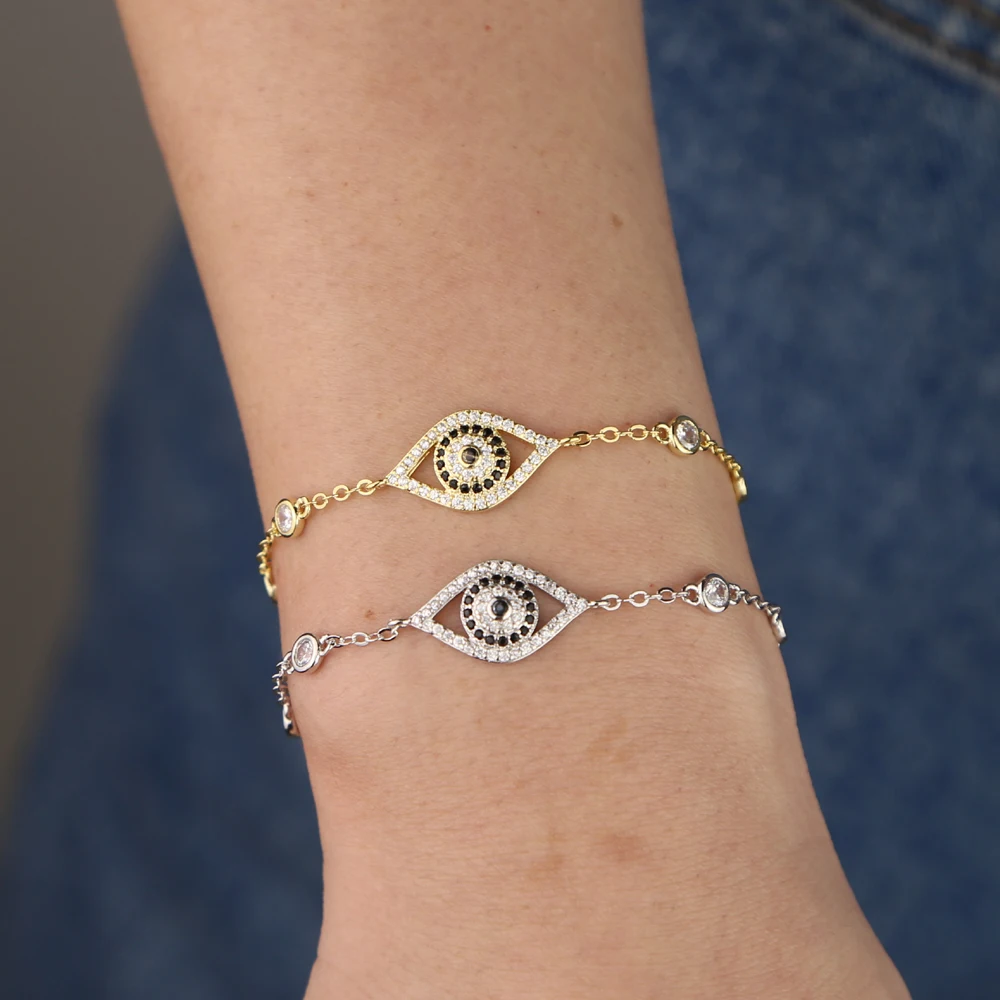 Модный турецкий золотистый браслет от сглаза размером 16 + 4 см 2019, золотистый браслет-цепочка с синим цирконием, регулируемые женские украшения