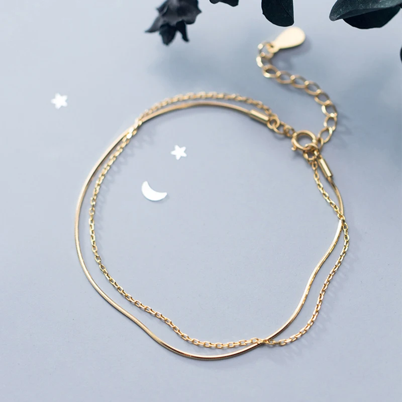 INZATT Настоящее серебро 925 пробы минималистичное двойной браслет-цепочка для очаровательных женщин свадебные романтические ювелирные изделия 2019 подарок