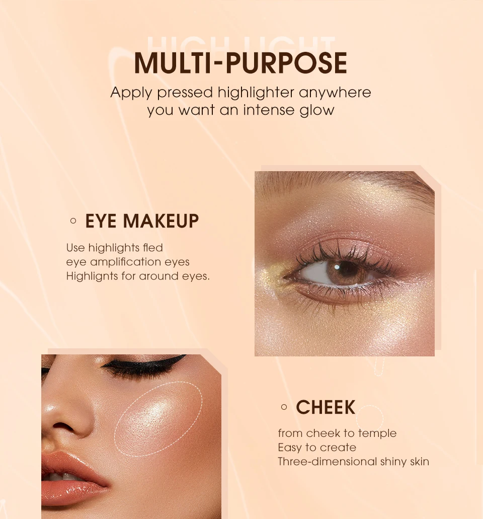 Нанесите прессованный хайлайтер в любом местеВы хотите интенсивное свечение
