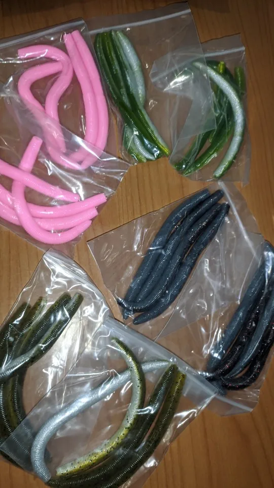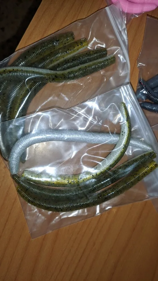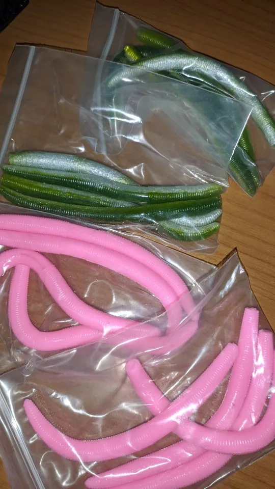Червячные басы, которые на первый взгляд Выглядят действительно хорошо, цвета красивые, супер мягкая резина, жалюзи для триггера для Waki, должен ли я просто попробовать их в воде и посмотреть, привлекают ли они, и если вы стоите, чтобы есть. Так что с первого взгляда обещаем хорошо!