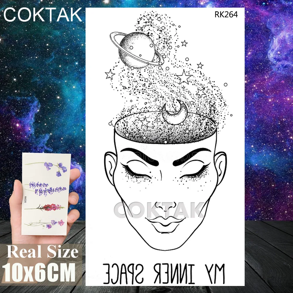 Черная галактика временные татуировки наклейки реалистичные поддельные тело искусство руки татуировки листы для взрослых Waterpoof геометрические татуировки партии