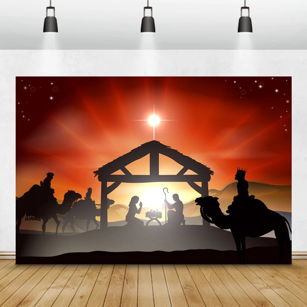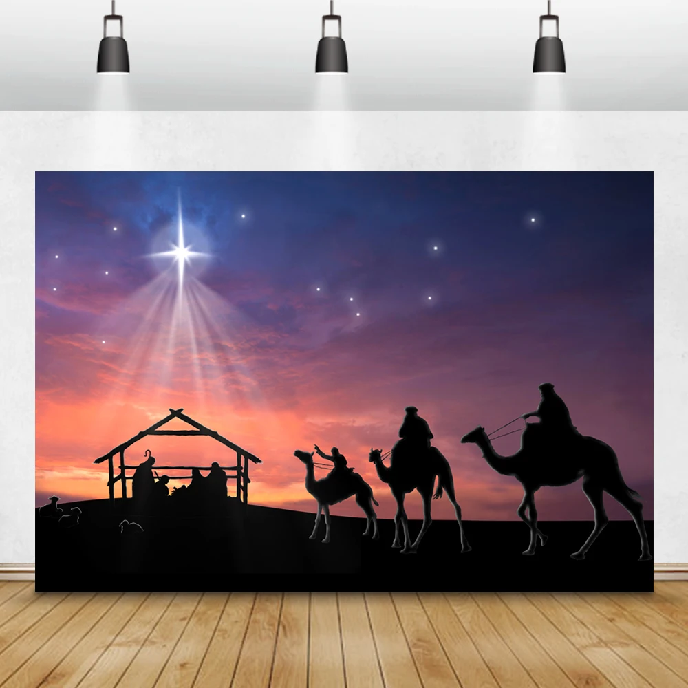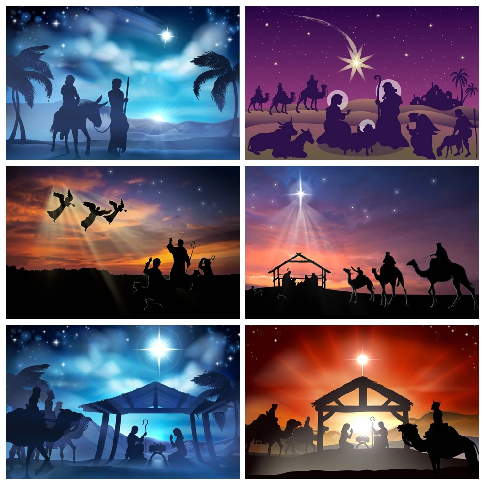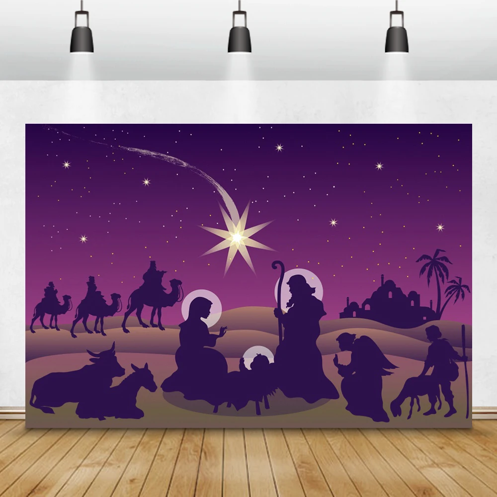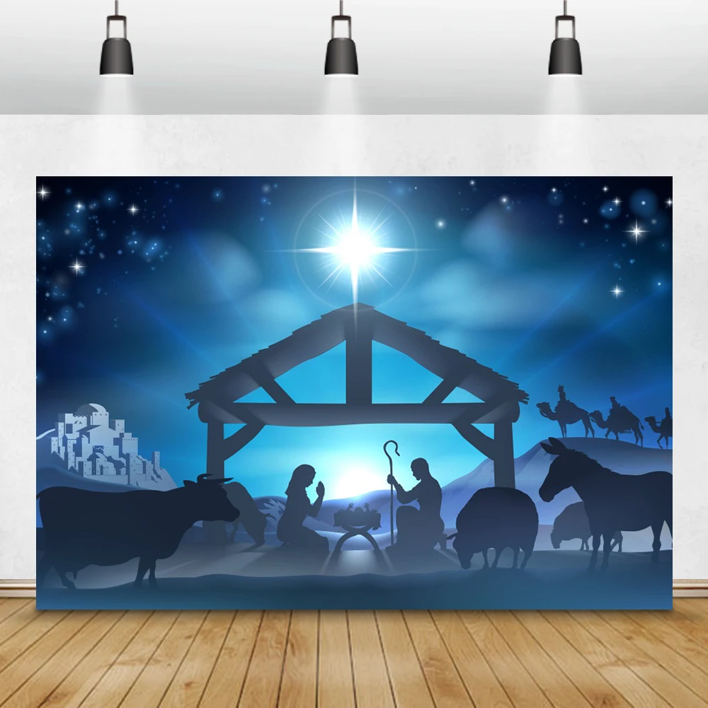 Laeacce Декорации для студийной фотосъемки с изображением сцены Рождества Иисуса рождения ночные звезды верующий портрет фоны для домашней студийной фотосъемки