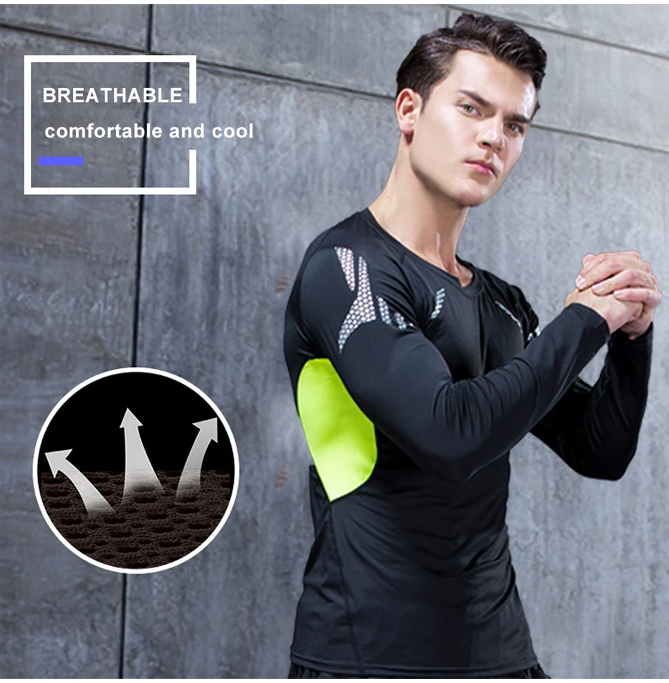 Спортивный костюм мужской, компрессионный, с длинными рукавами, Быстросохнущий