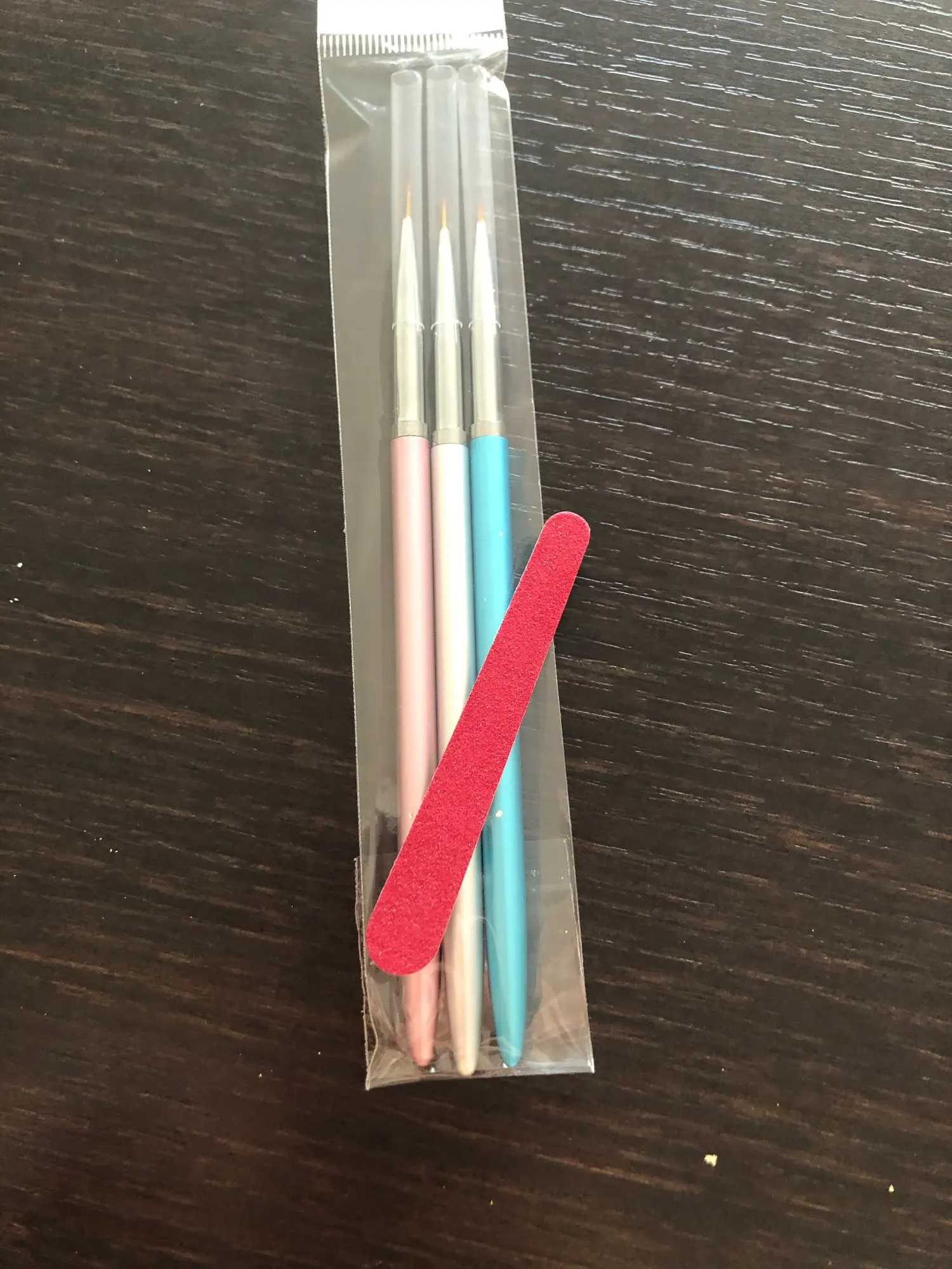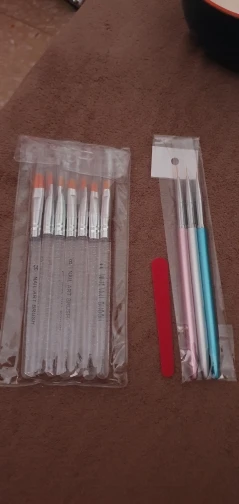 Кисти металлические, волосы немного кривые, но я думаю, что это вина в транспортировке, они приятные на ощупь, они очень удобны в хранении, я доволен, доставка занимает 2 недели Я получил мини пилку для ногтей бесплатно, большое спасибо