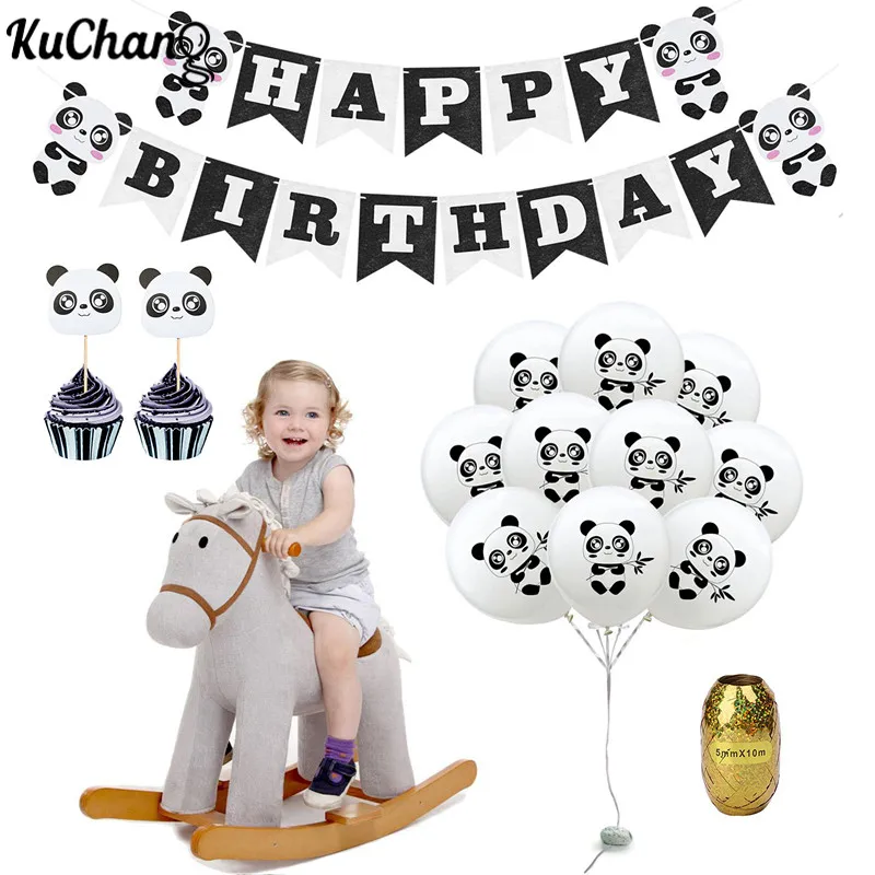 Мультяшная панда, искусственные украшения, одноразовая посуда для детей и девочек, надувные воздушные шары в виде панды со звездами для дня рождения