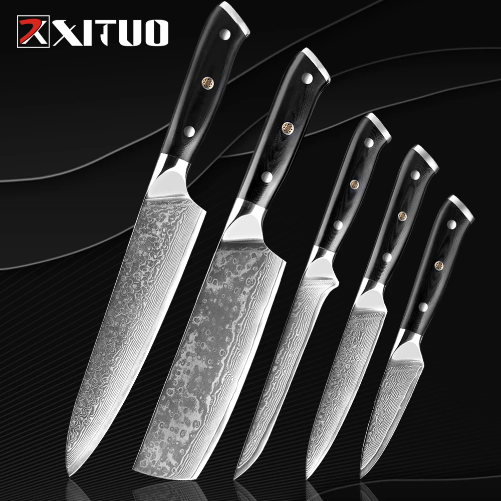 Поварской нож XITUO из дамасской стали, японский Кливер Sankotu, для резки мяса, универсальный кухонный нож Kiritsuke, инструмент для приготовления пищи, фруктов