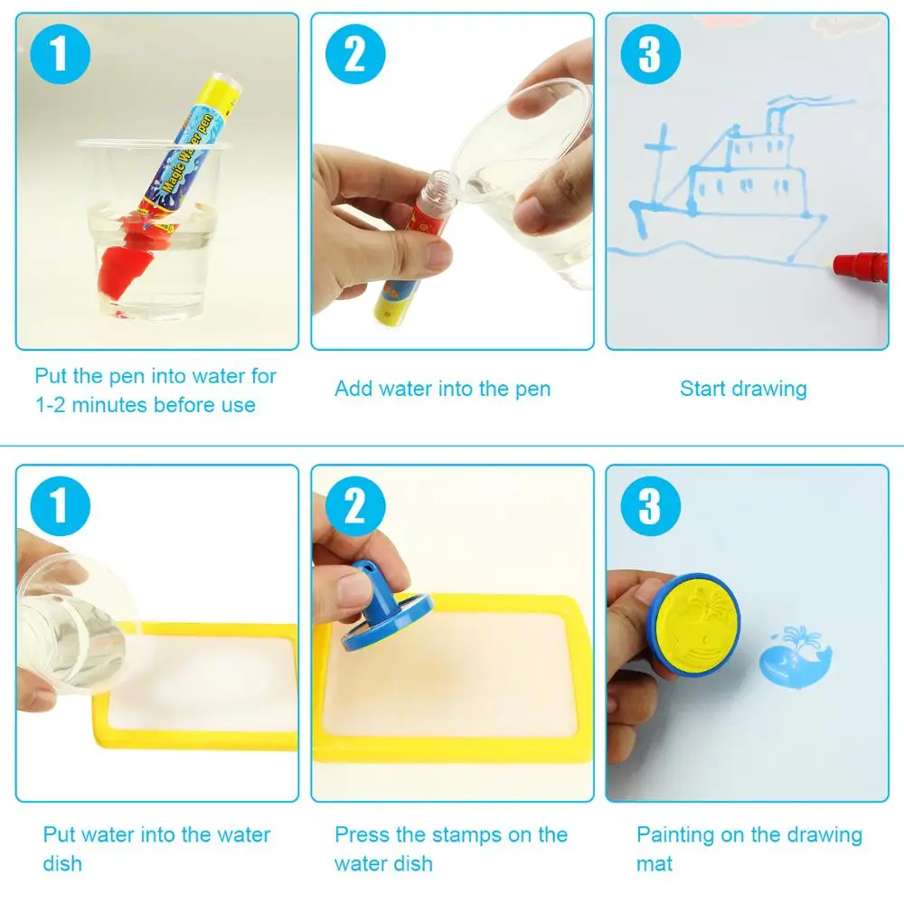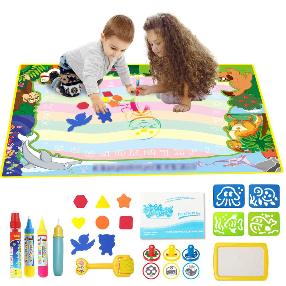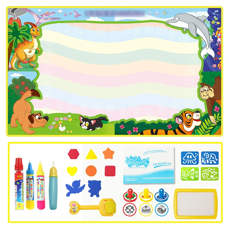 Магический коврик для рисования водой, 8 типов большого размера, 4 ручки для рисования и 1 набор штампов, игрушки для рисования, доска для рисования, обучающие игрушки для детей