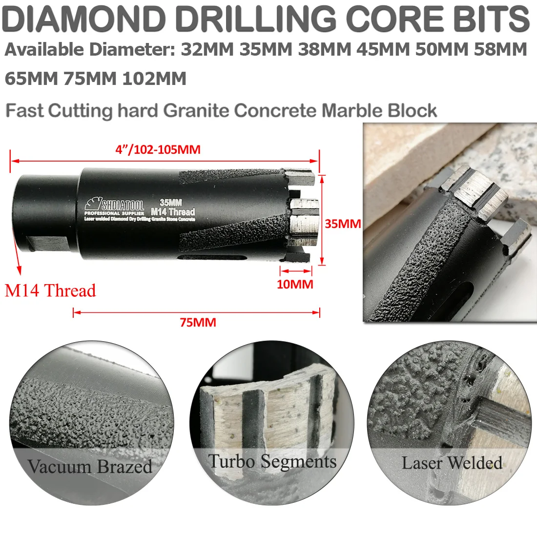SHDIATOOL 1 шт. Лазерная сварная алмазная пила диаметром 102 мм для сухого или влажного бурения M14, кольцевая пила для сверления гранита