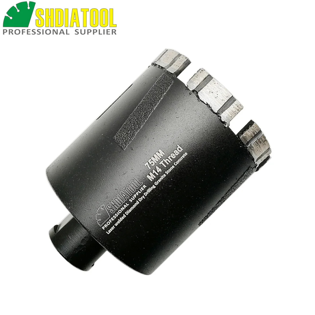 SHDIATOOL 1 шт. Лазерная сварная Алмазная долота для сухого или влажного бурения M14 кольцевая пила для бурения гранитного мрамора диаметром 75 мм