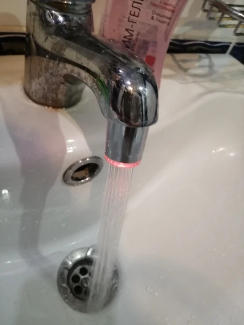 Классная штучка, хорошо рассеивает воду и создаёт напор. Но лучше брать с одним цветом, что б не мигала, глаза устают. Вместо указанных семи цветов, всего пять. От сильного напора воды начинает свистеть. Рассеиватель идёт без переходника на внешнюю резьбу. Буду заказывать ещё, но с одним цветом без мигания.