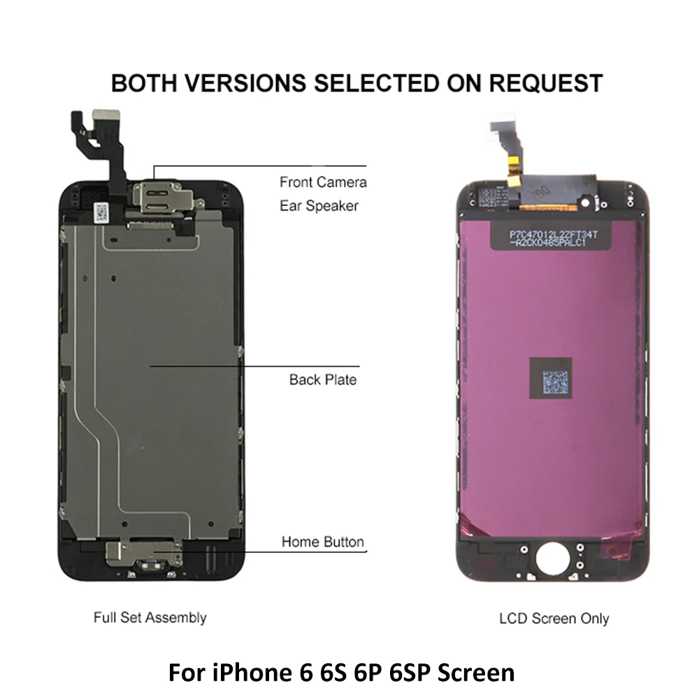 Примечание: Если вам нужна установка камеры и динамика, пожалуйста, выберите «полный комплект» В противном случае товар без мелких деталей, только ЖК-дисплей с дигитайзером. Обратите внимание: Экран полной сборки не будет иметь Touch ID, потому что только оригинальная кнопка домой может быть распознана вашим телефоном, так что вы можете перенести свою оригинальную кнопку домой на новый экран, тогда все будет в порядке, мы не принимаем возврат или возврат из-за отпечатков пальцев. Спасибо.