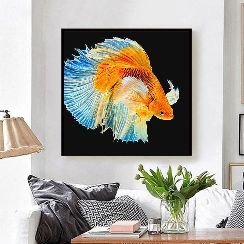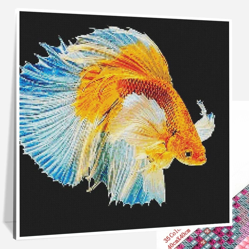 Алмазная вышивка Huacan, полноразмернаякруглая картина из страз с изображением рыб, вышивка крестиком, мозаика для домашнего декора, Прямая поставка