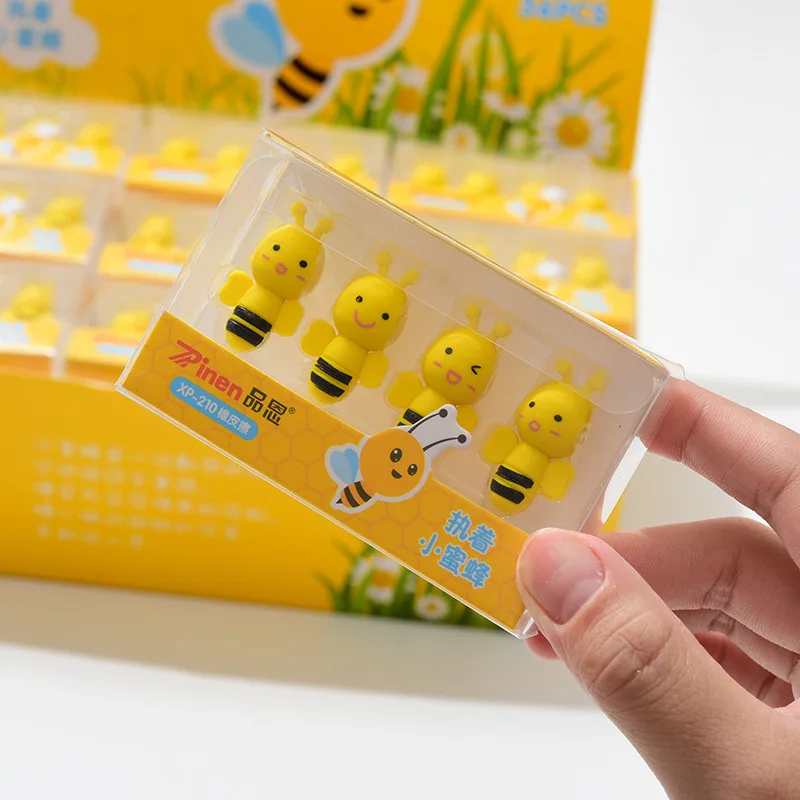 4 шт.кор. милые ластики в виде мультяшной пчелы, резиновые школьные...
