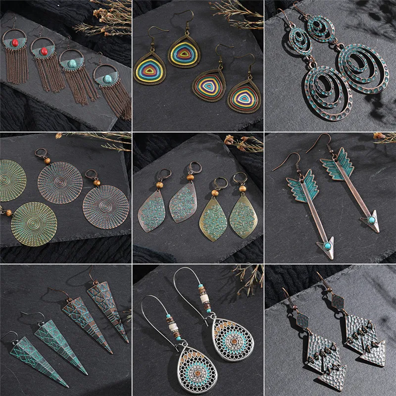 Винтажные бронзовые геометрические женские серьги ювелирные изделия 2020 длинные металлические кисточки с бахромой африканские серьги для женщин большие круглые серьги