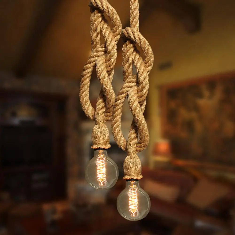 Винтажный подвесной светильник из пеньковой веревки E27 AC85-265V, Подвесная лампа, современный подвесной светильник для Эдисона, промышленного декора