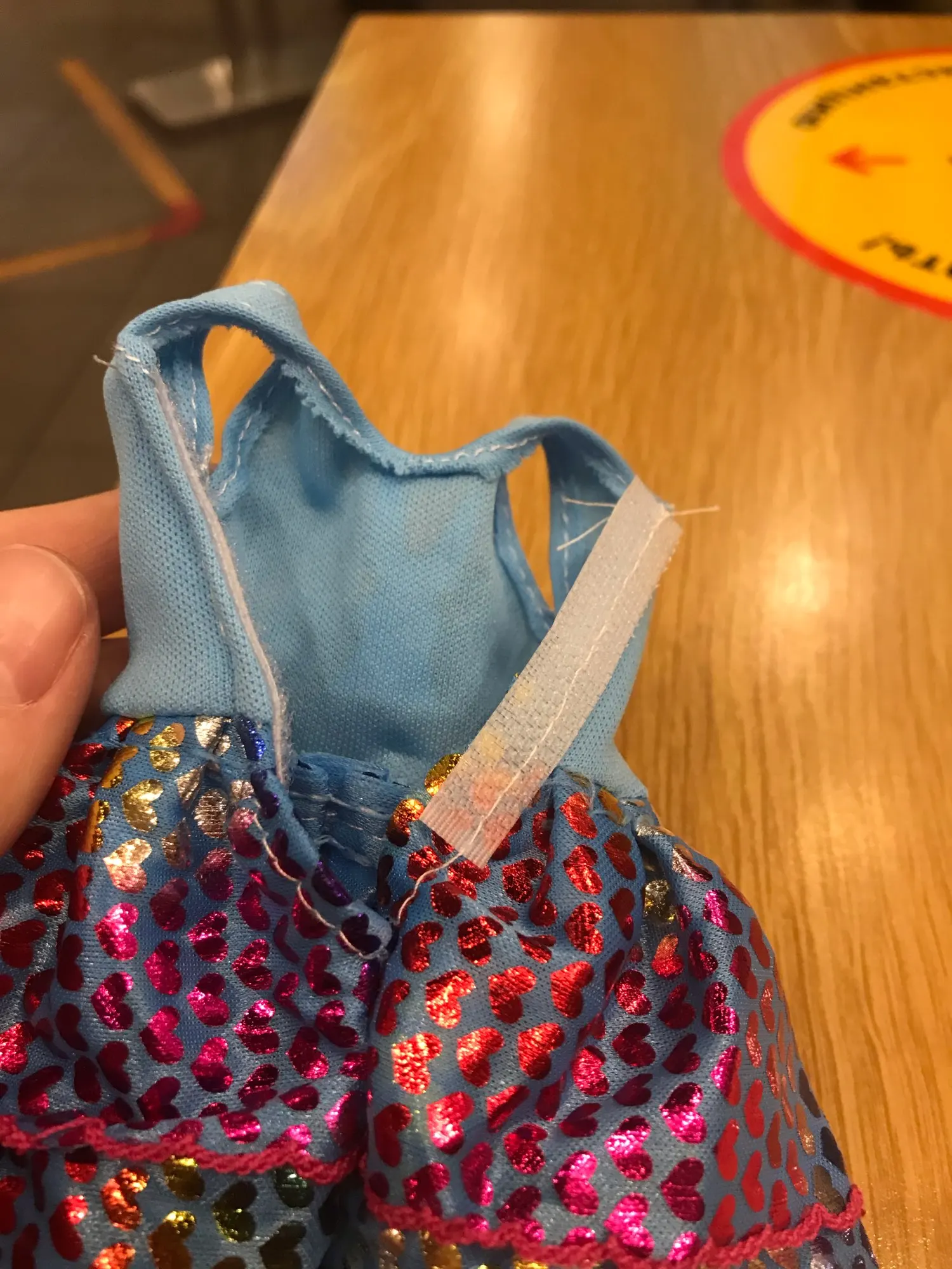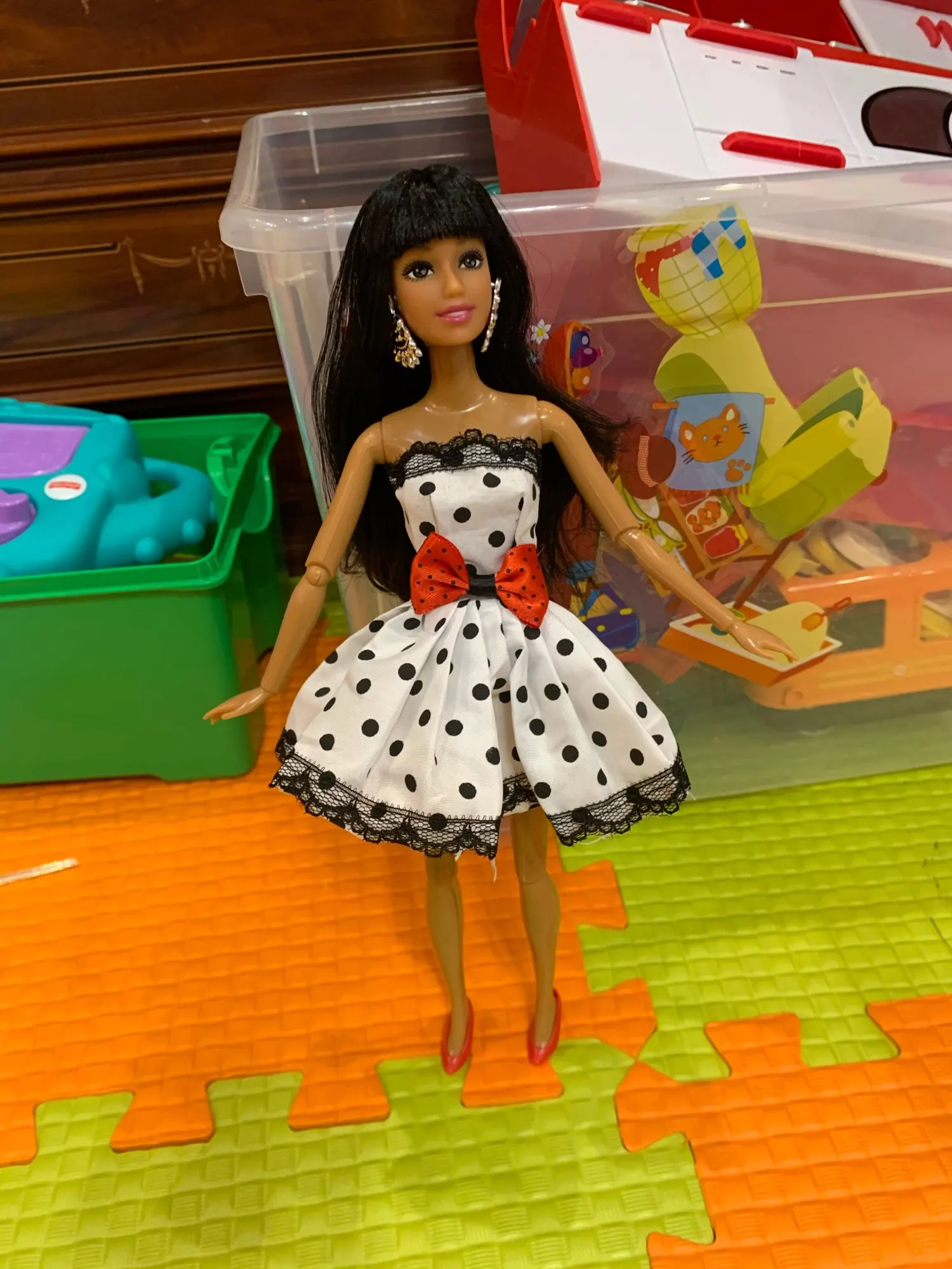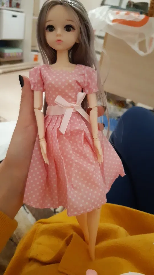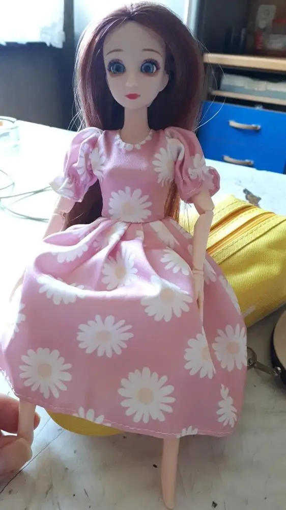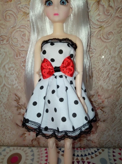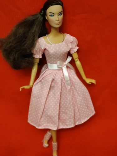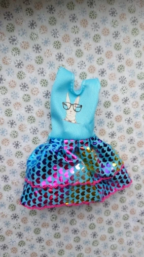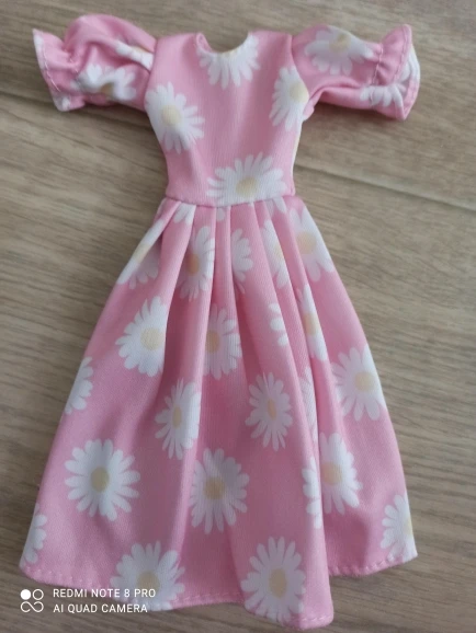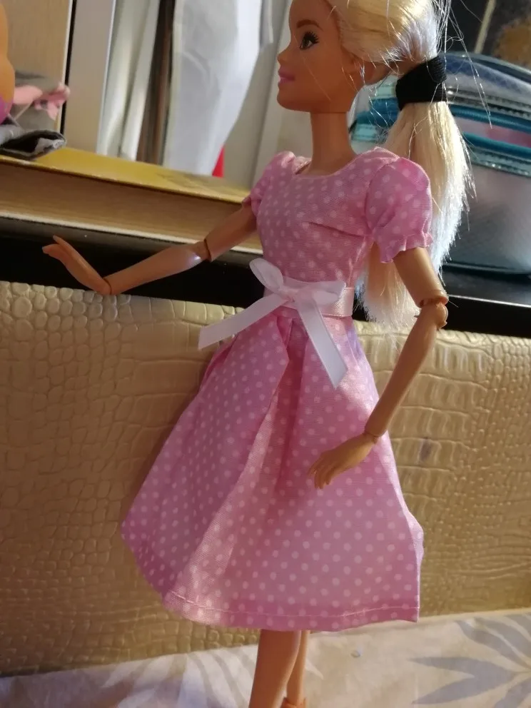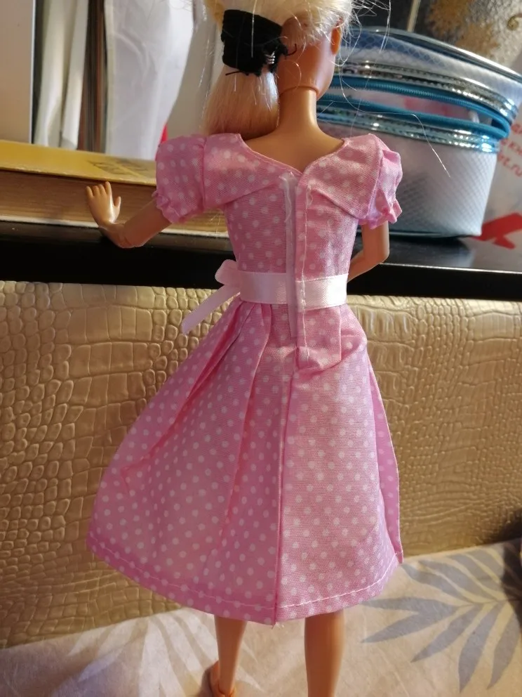 Это платье бесподобно и точно стоит своих денег. Сделано из полиэстера и по качеству не отличить от оригинальных платьев Барби. К сожалению, пока не примерила на куклу, но думаю, все будет хорошо сидеть. Быстрая доставка!