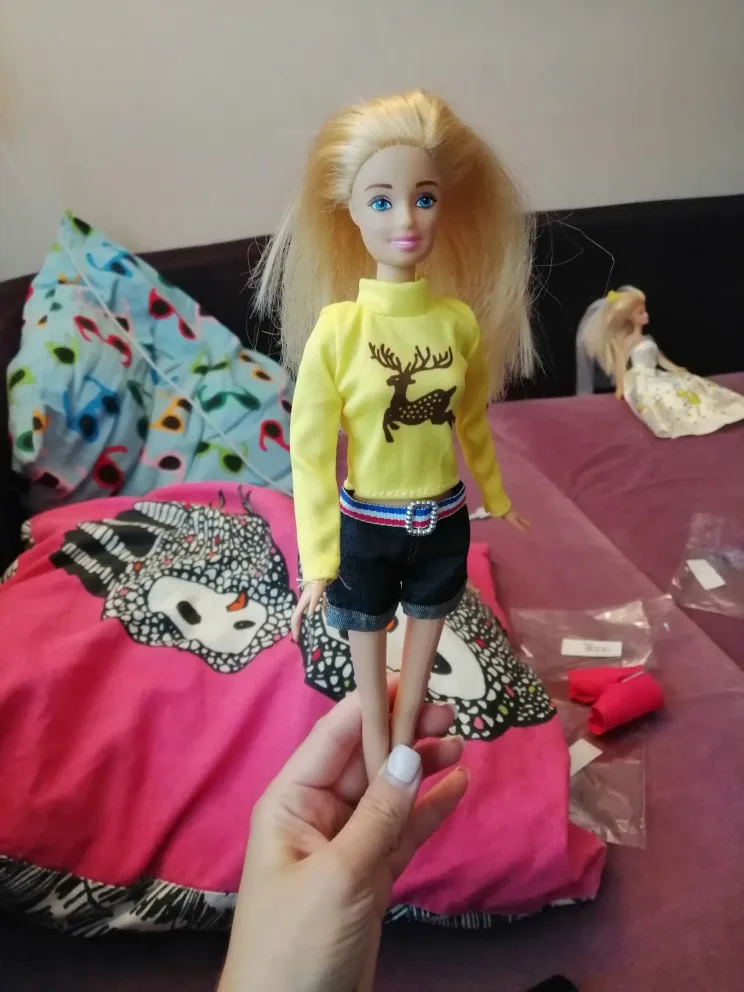 Джинсовые шорты не подходят для оригинальной Барби, в противном случае они выглядят хорошо.
