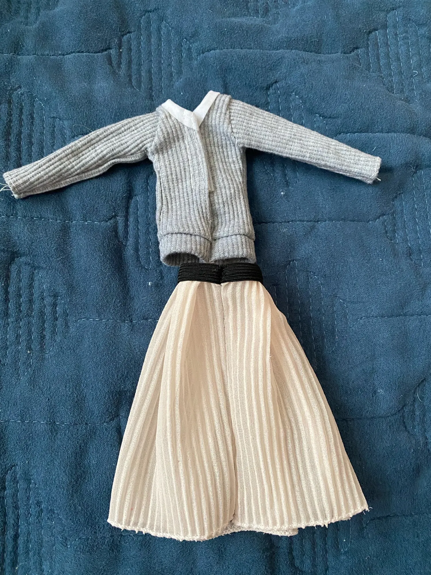 юбка и блузка на очень миниатюрную куколку. рукава пришлось загнуть, очень длинные.