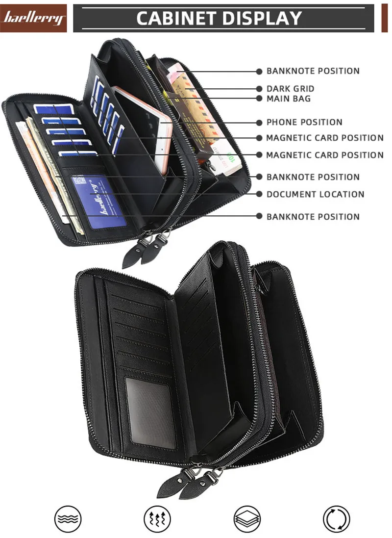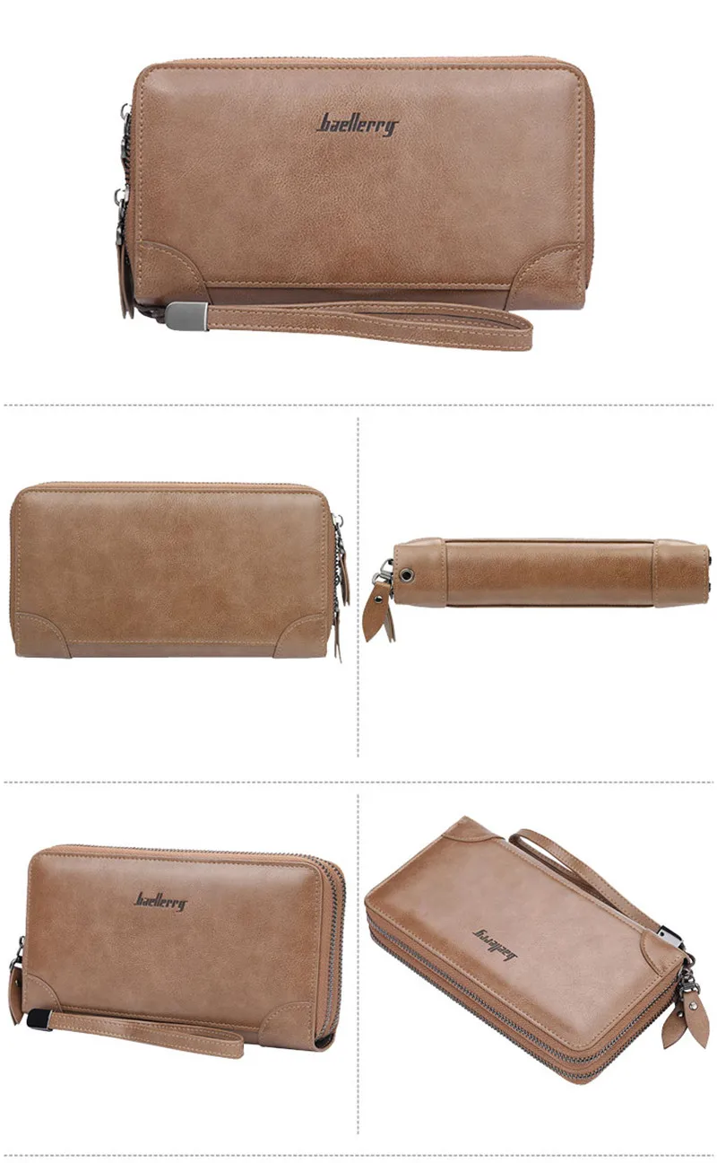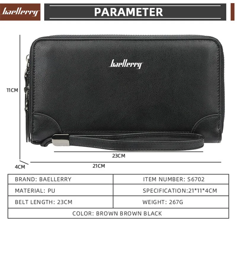 Мужской кошелек Baellerry, длинный деловой клатч, большой вместимости, кошелёк на молнии, из искусственной кожи