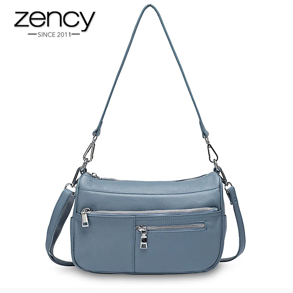 Zency благородная Темпераментная Женская сумка через плечо из 100% натуральной кожи, зимняя льняная синяя модная сумка через плечо, бежевая сумка-хобо