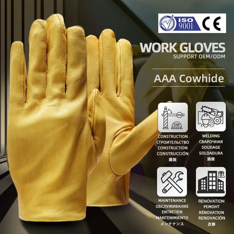 Рабочие перчатки QIANGLEAF из воловьей кожи, перчатки для механиков, водителей, для садоводства, для работы и безопасности, мужские, оптовая продажа, 130NP