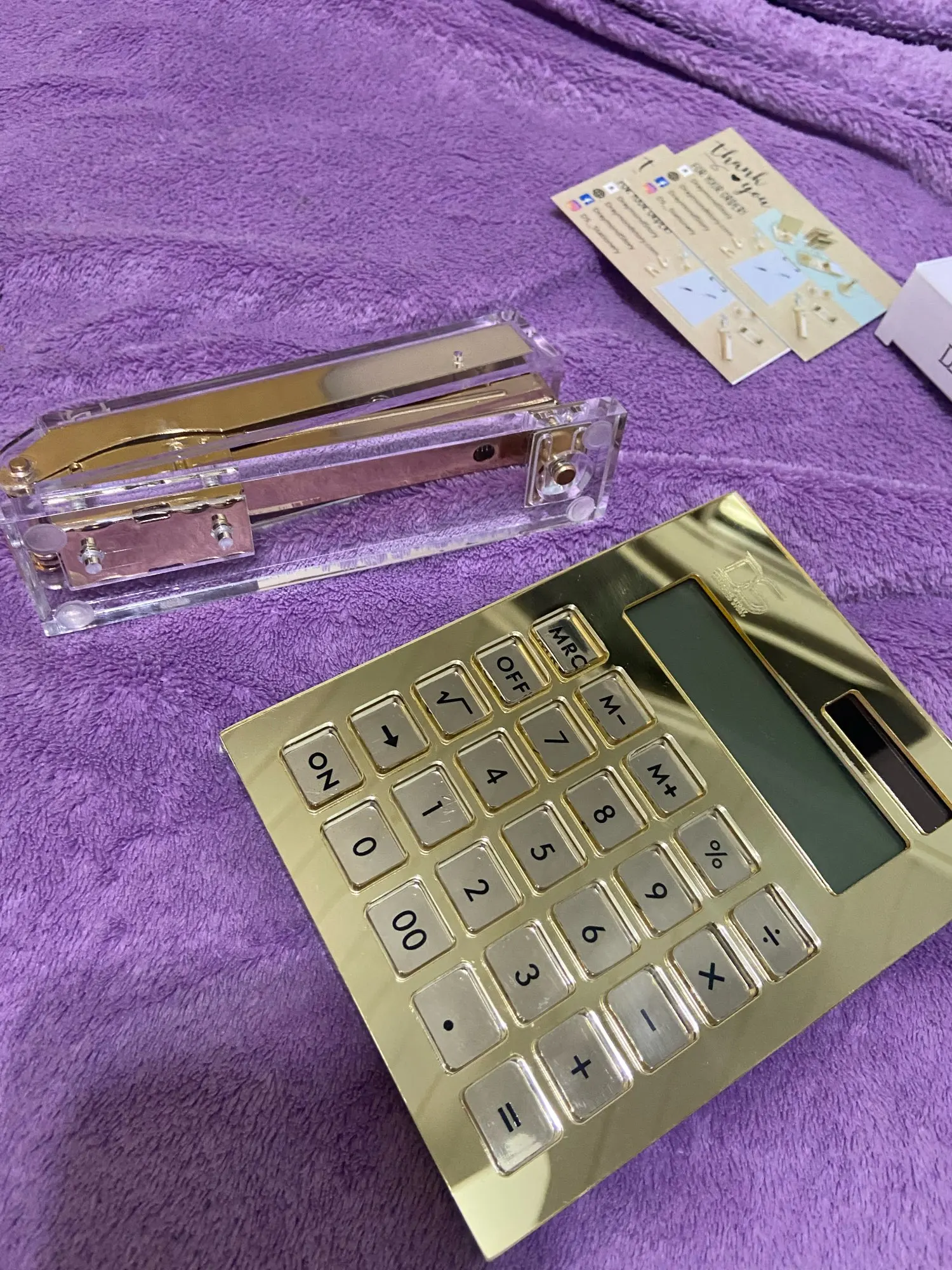 Настольный набор из желтого золота и акрила элегантный степлер + калькулятор солнечной энергии