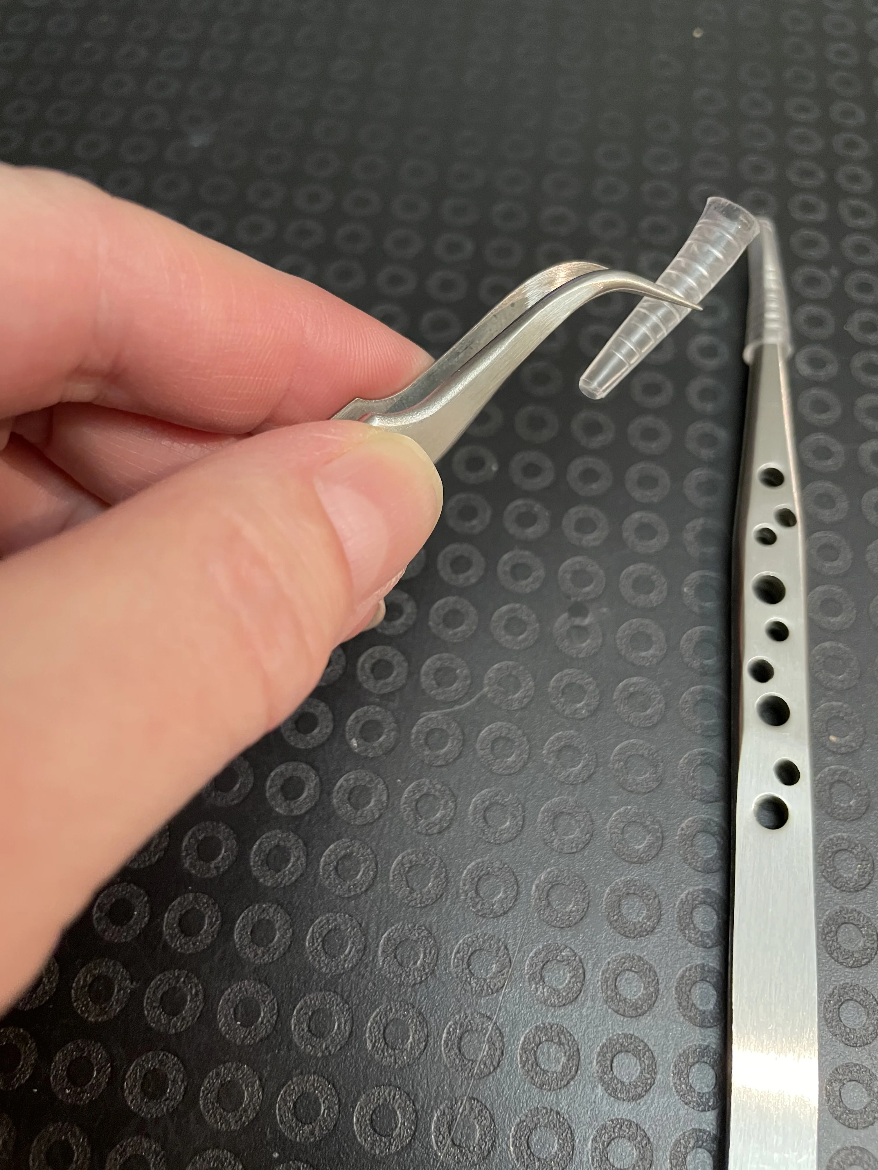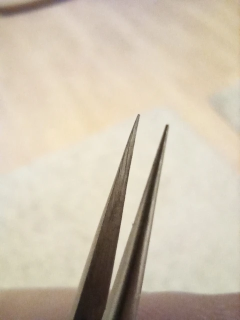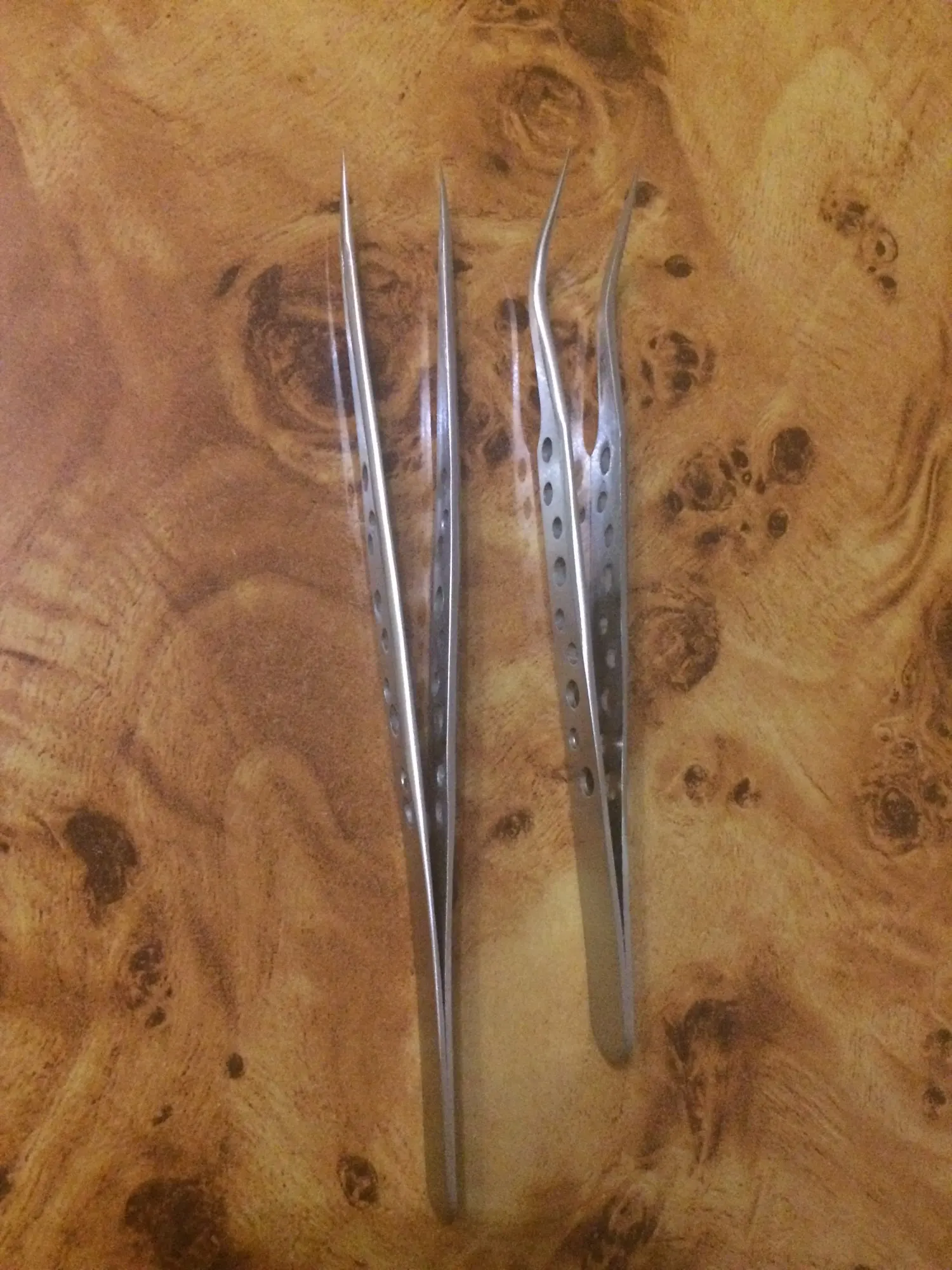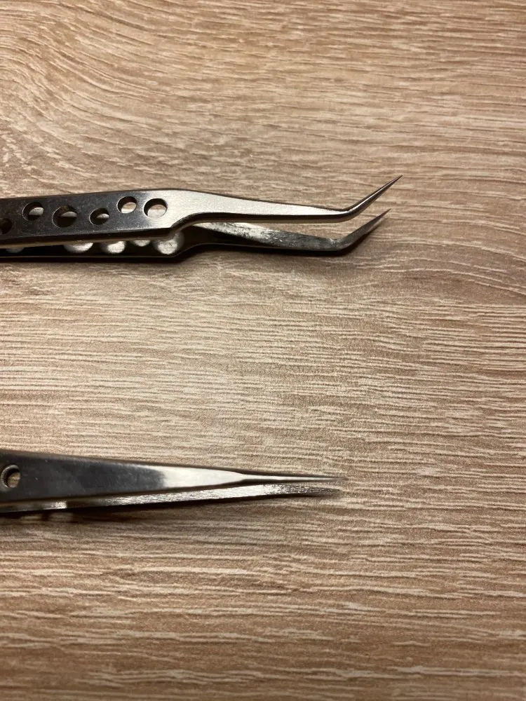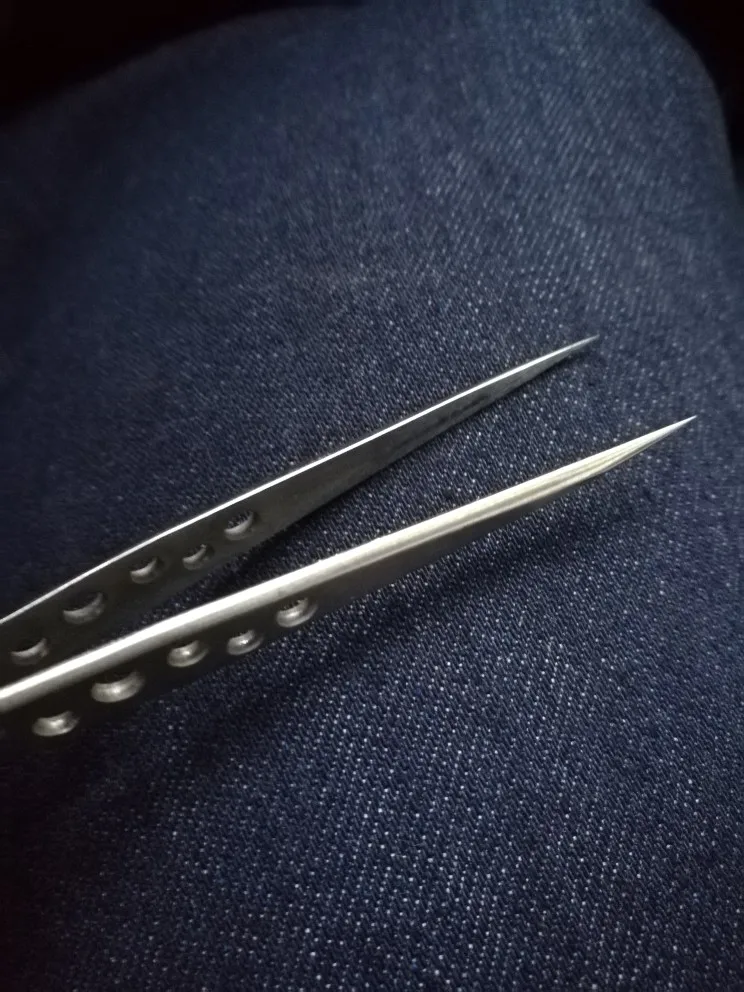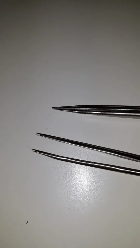 Прямой пинцет, конечно, ужасный... Как клюв у попугая. А вот скошеный хороший, без зазора.