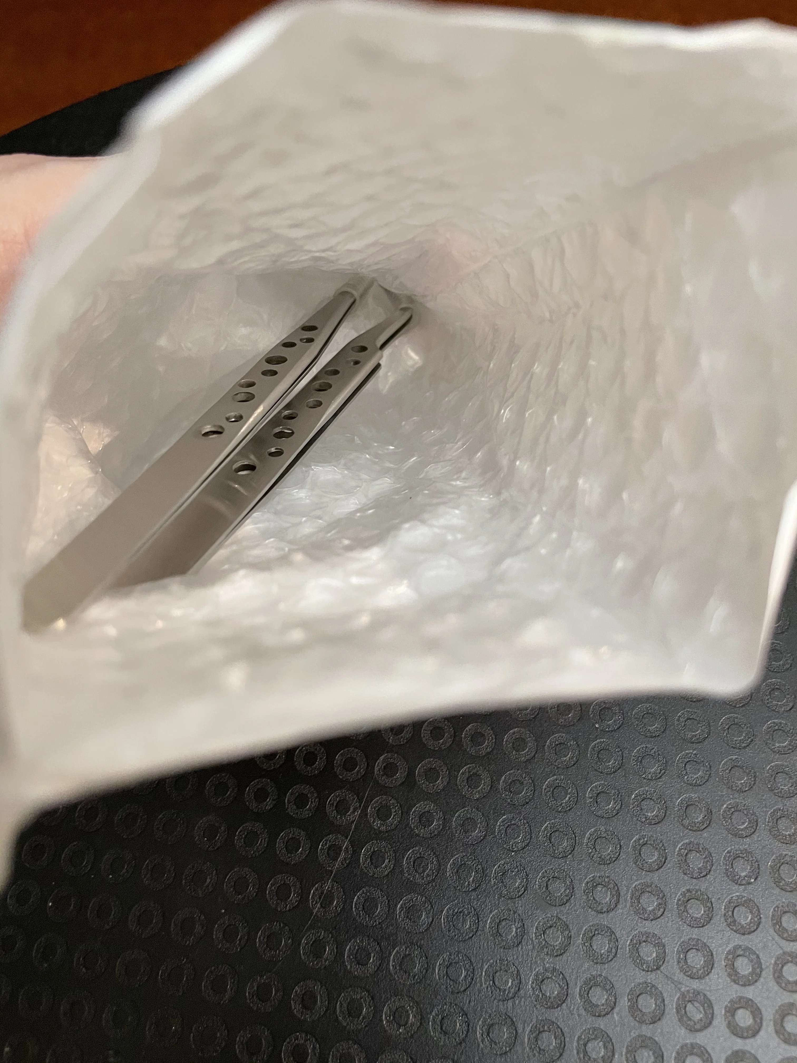 заказ пришёл быстро. пинцет сделан отлично, очень острые кончики. присутствует запах масла, видимо прям с завода)