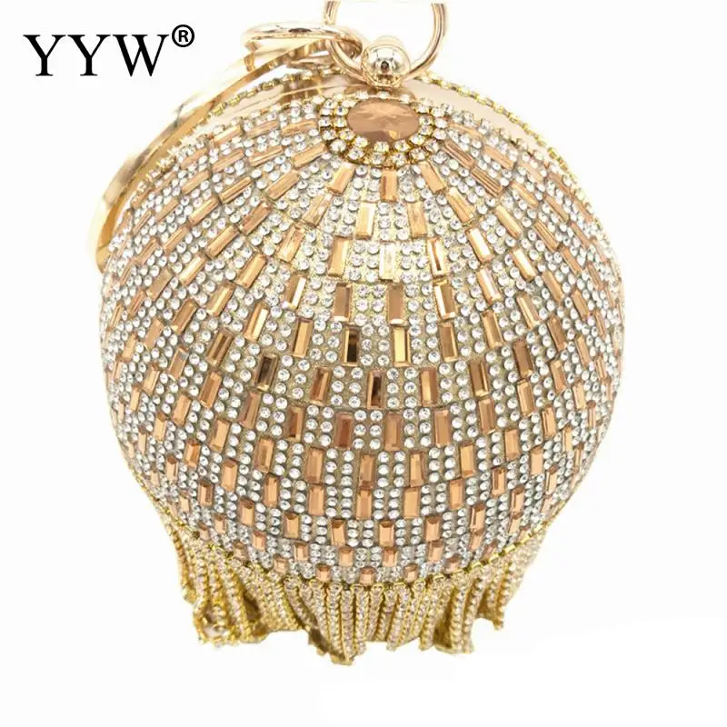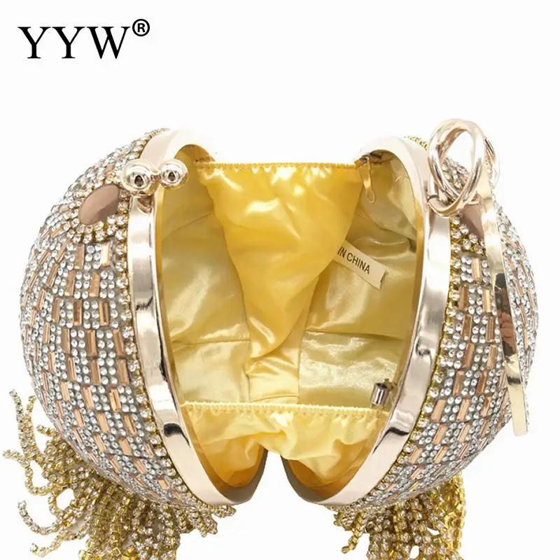 Женские клатчи с бриллиантами и кисточками, вечерние сумки золотистого цвета, свадебная сумка с металлическими кристаллами, сумка на плечо для невесты, сумочка-клатч с ремешком