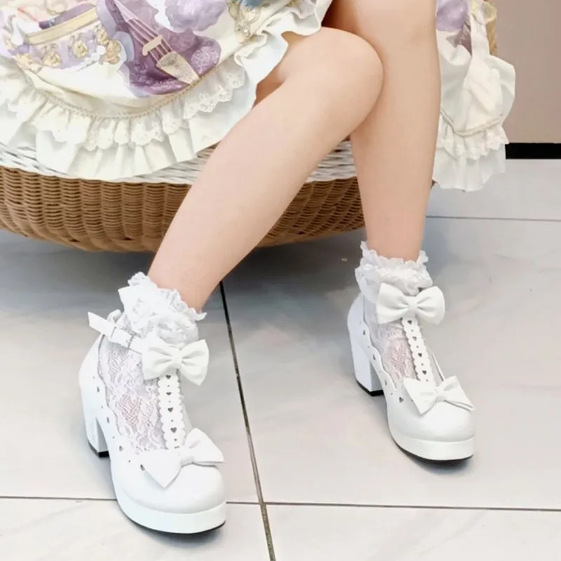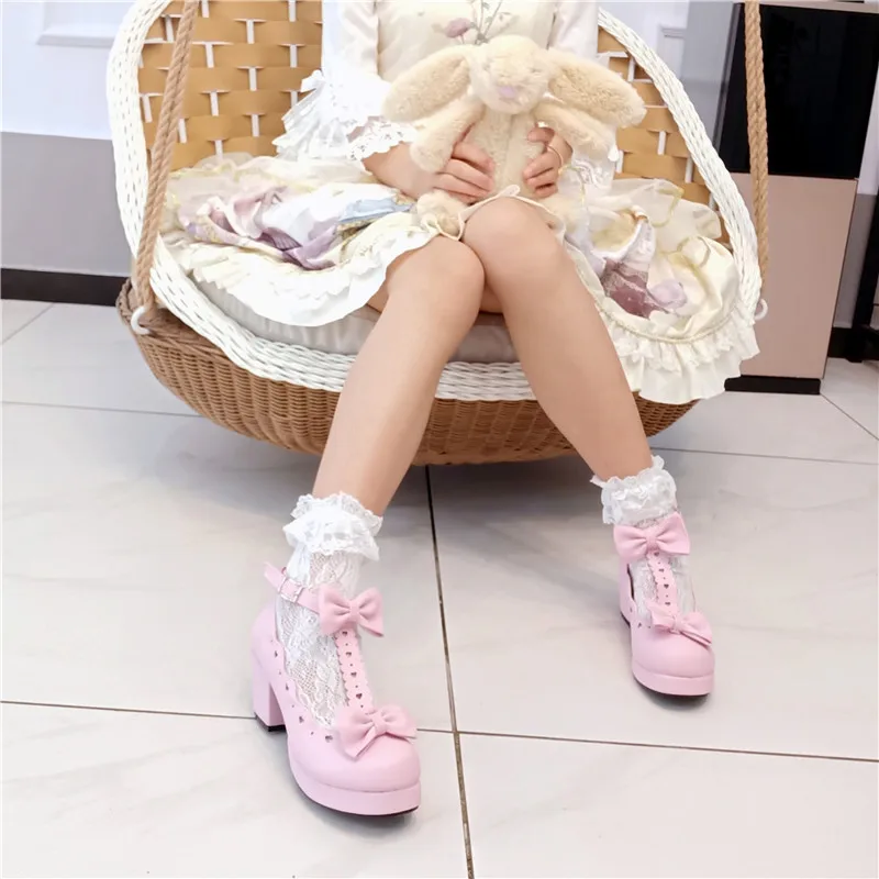 женская обувь туфли женские туфли лодочки лодочки женские Туфли-лодочки женские на высоком каблуке, готические туфли-лодочки, милый бант, повседневная обувь в стиле принцессы, Лолита косплей-вечеринка квадратный каблук