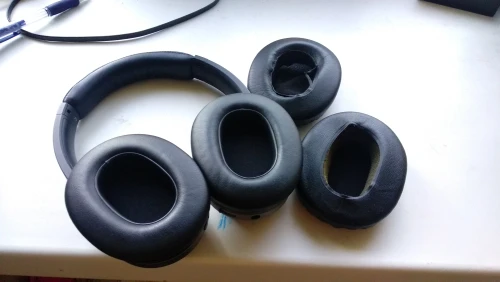 Ну всё как на фото в описании. На W830Bt подходит отлично. Старые амбушюры надо отщелкнуть от чашки, а потом отодрать кожзам от пластикового овальчика и вставить его в новые амбушюры. Меняется без труда за минуту. Выглядит красиво.