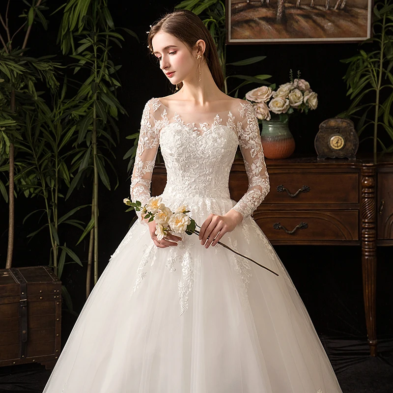 2021 кружевное свадебное платье с длинным рукавом, новое роскошное мусульманское бальное платье, свадебное платье на заказ, Vestido De Noiva X