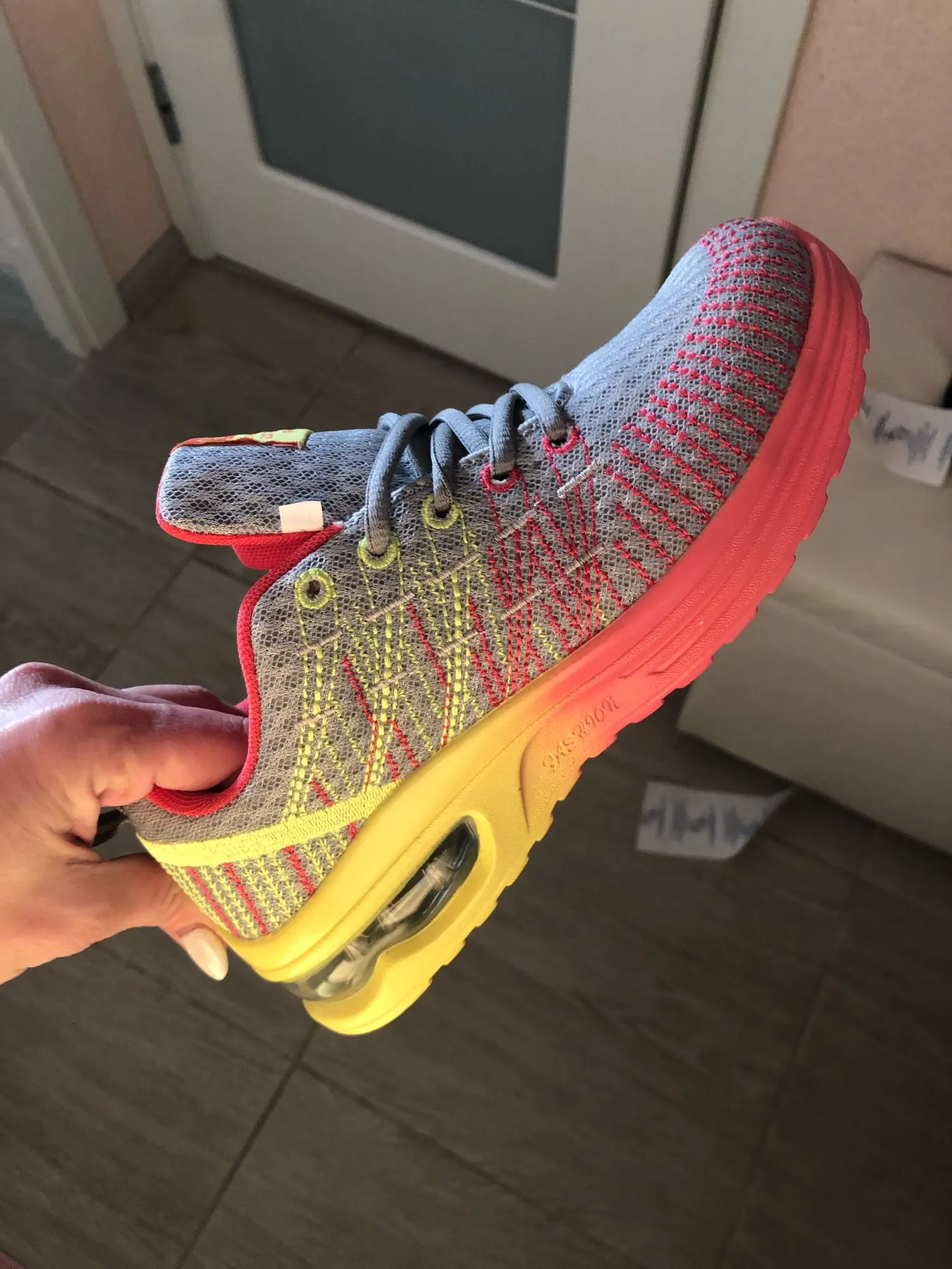 Они точно такие же, как на фотографиях и описании продавца, размер соответствует, быстрая доставка и очень хорошая упаковка, они очень красивые туфли, очень яркие цвета, очень удобные, они не весят ничего, Я полностью рекомендую!