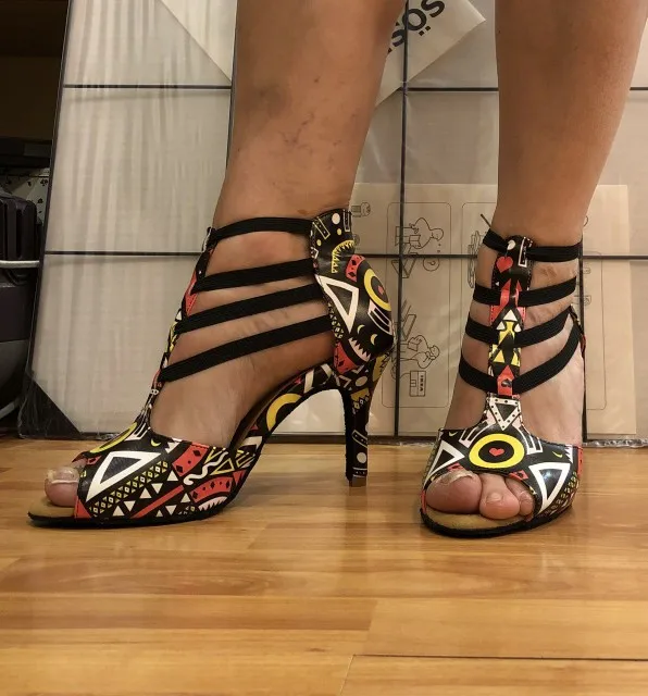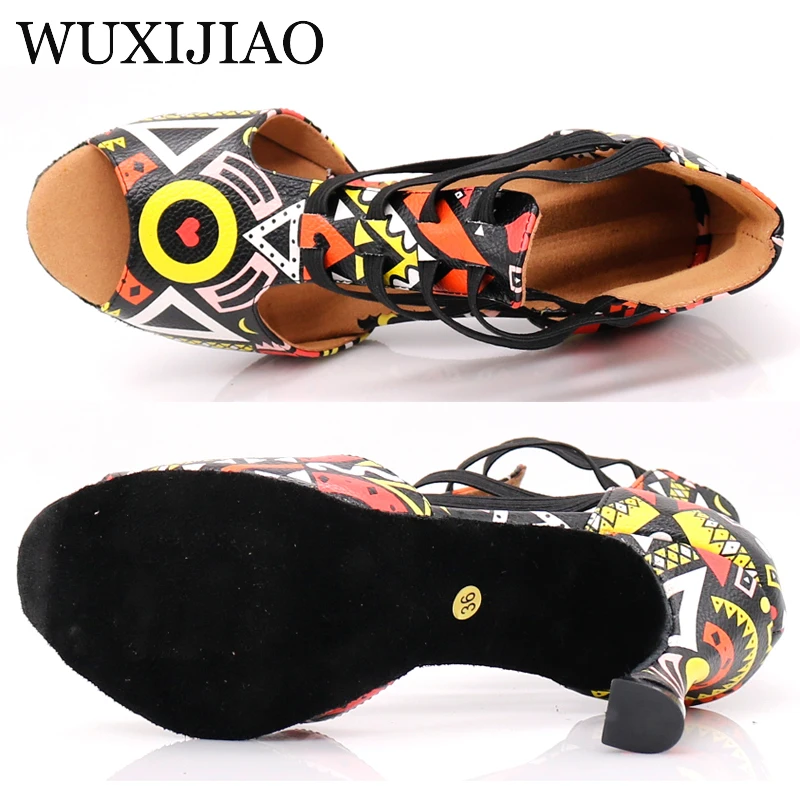 Женские танцевальные ботинки WUXIJIAO, с принтом, 9 см