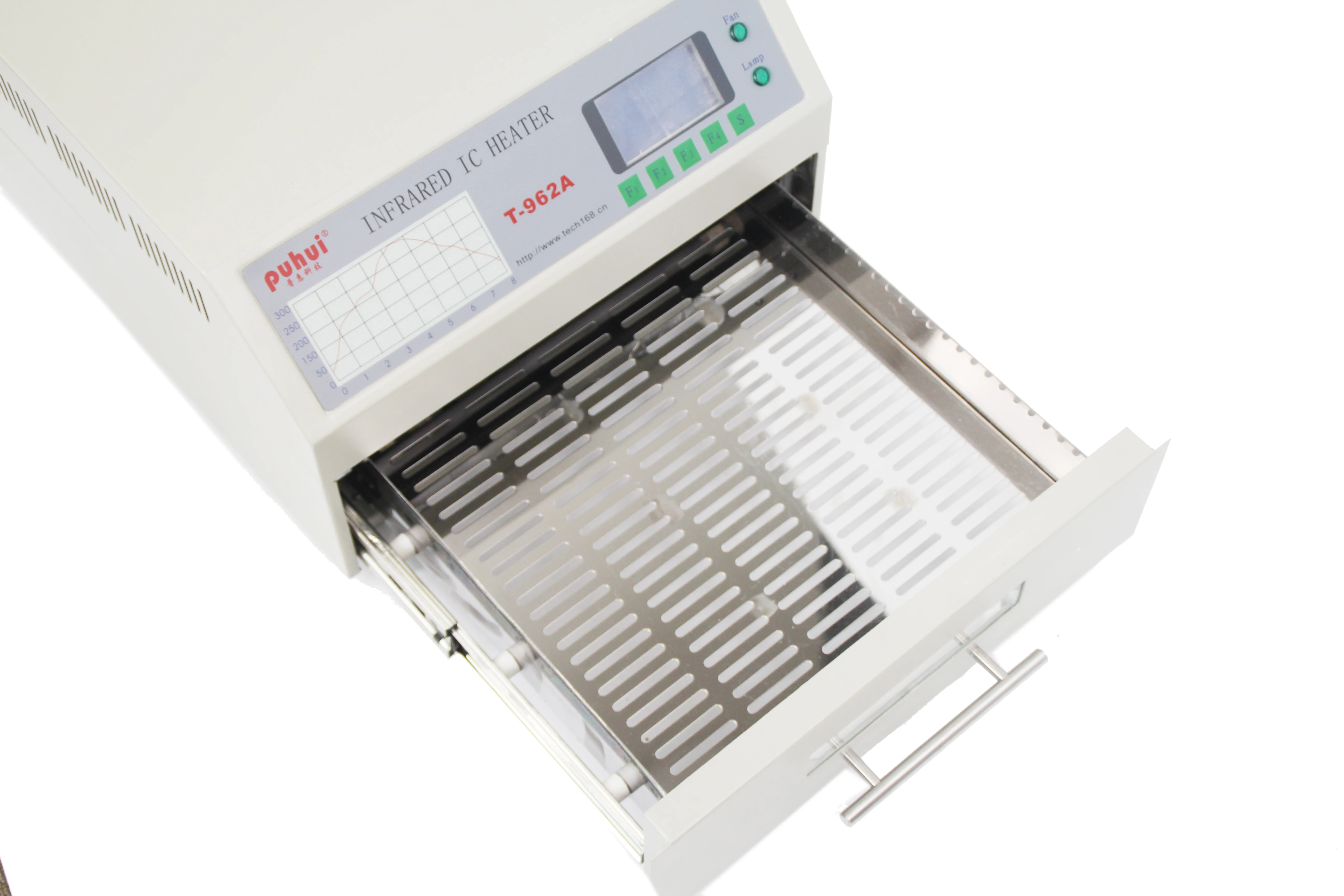 (5) Большое количество доступных функций. T962A Может припаять большинство поверхностных или двухсторонних печатных плат мелкие детали, например чип, SOP, PLCC, QFP, BGA и т. Д. Это идеальное решение для переделки от одиночных пробежек до по требованию мелкосерийного производства.