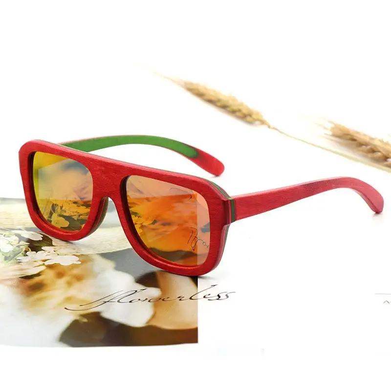 BerWer 2021 поляризованные солнцезащитные очки с квадратными линзами с Для мужчин Для женщин Для мужчин скейтборд зеркало в деревянной раме для объективов с UV400 очки
