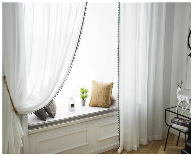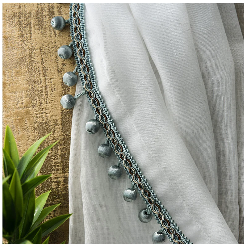 Однотонные зеленые прозрачные шторы для гостиной, спальни, Белый Тюль, занавески из вуали, свадебный фон с бусинами, Короткие Занавески