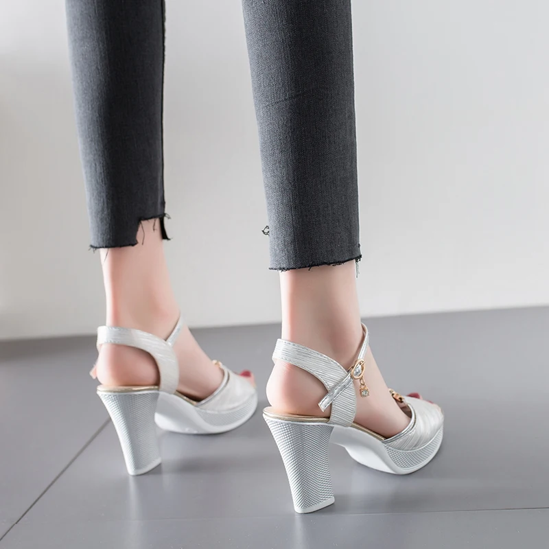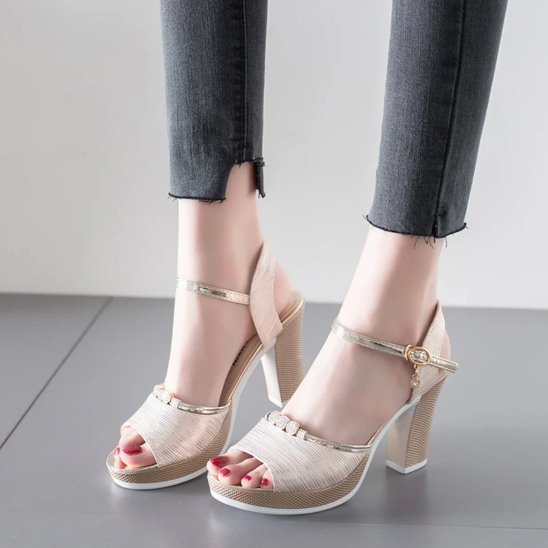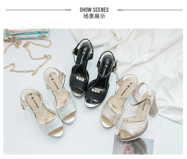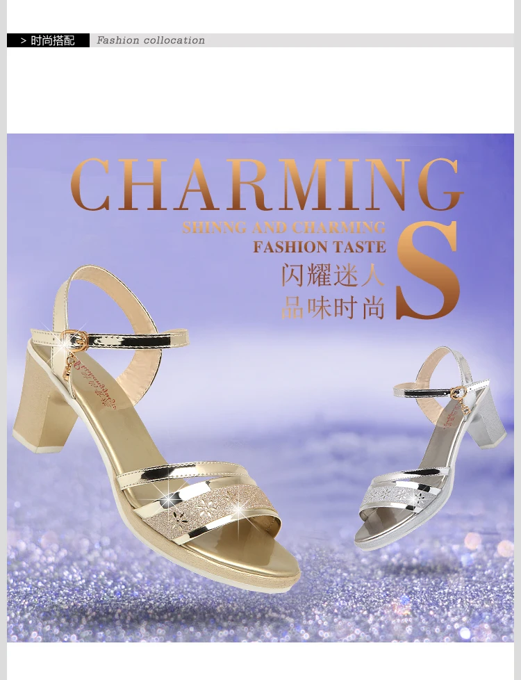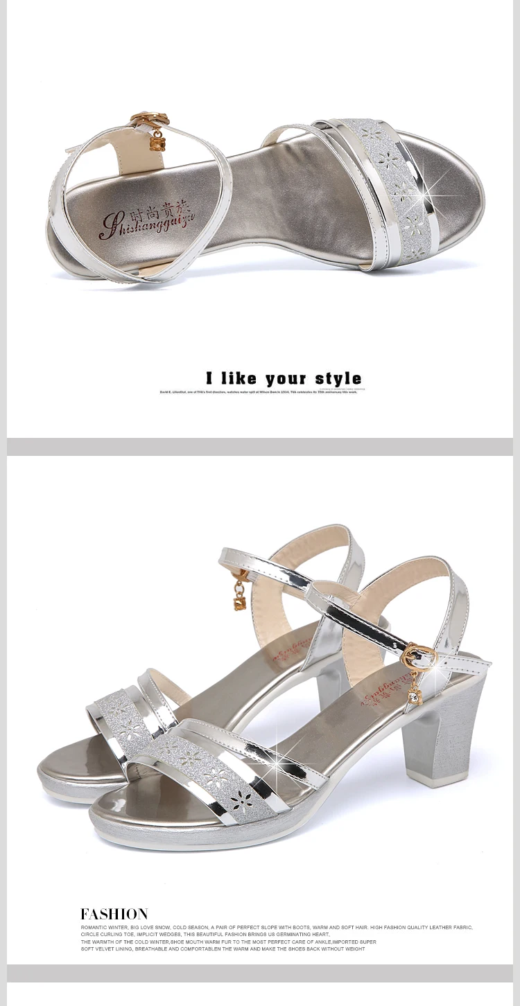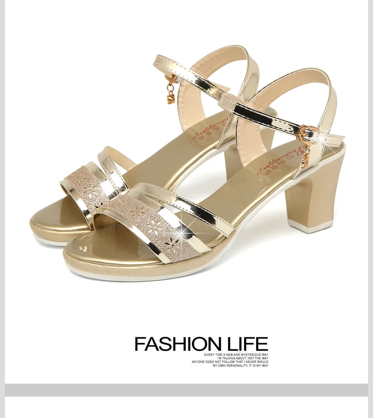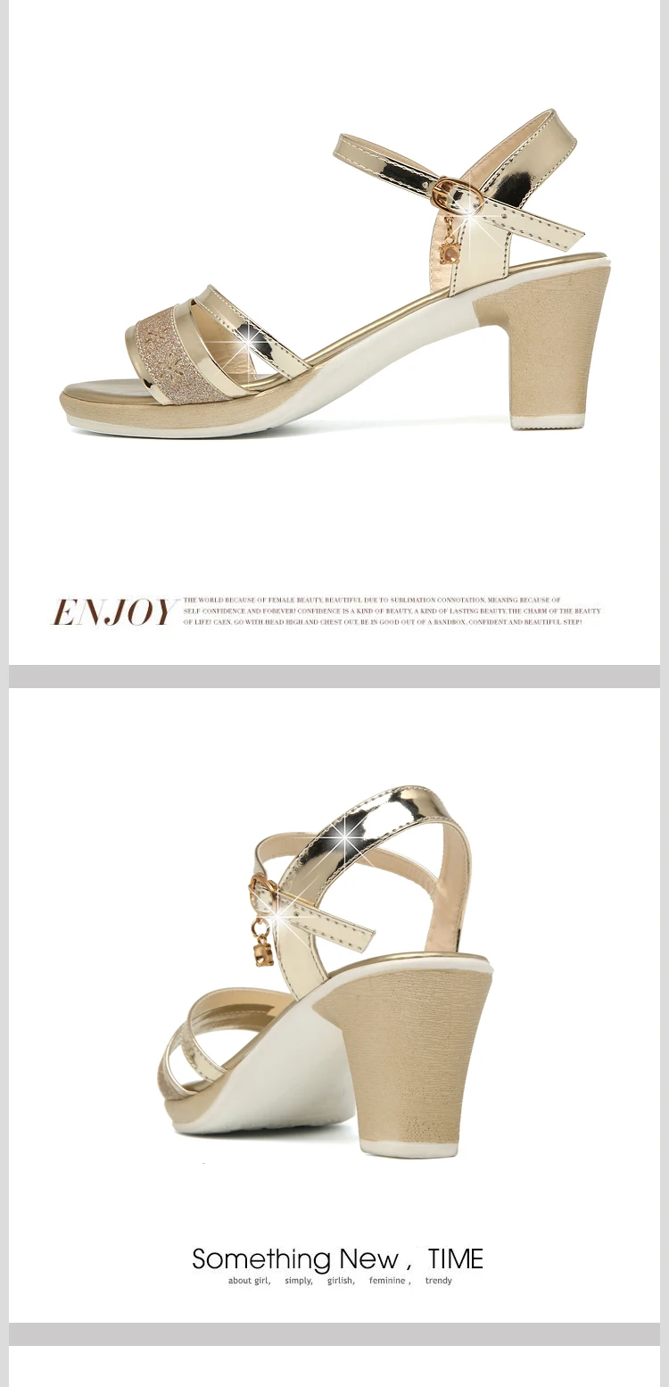 Сандалии женские на платформе, богемные босоножки с ремешком и пряжкой, квадратный высокий каблук, модная обувь с блестками, золотистые, серебристые
