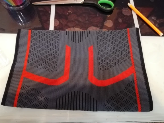 Обхват подобрала по таблице. Подошло. изнутри сверху селиконовые полосочки , чтобы не сползал.Сустав охватывает не очень плотно, может так и нужно.